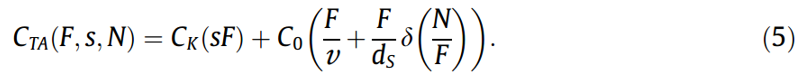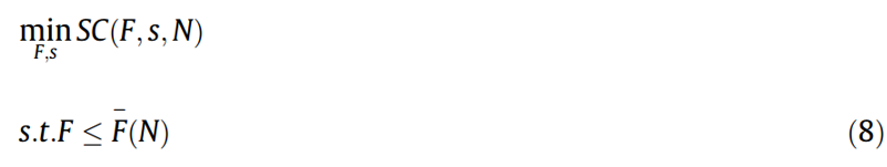 在给定需求水平N的情况下,交管机构通过提供车辆频率F和车辆容量s来使社会成本最小化,同时受到车次频率约束的限制: