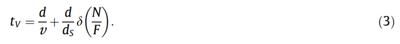 总旅行时间是进出站时间、等待时间(tw)和车内旅行时间(tv)的总和,文章假设进出站时间为零。平均等待时间设定为车次间隔的一半,车内旅行时间的计算公式为: