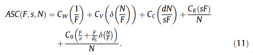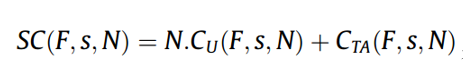 表示系统社会成本,福利最大化下,对于给定的需求水平N,选择F和s以使社会成本最小化。