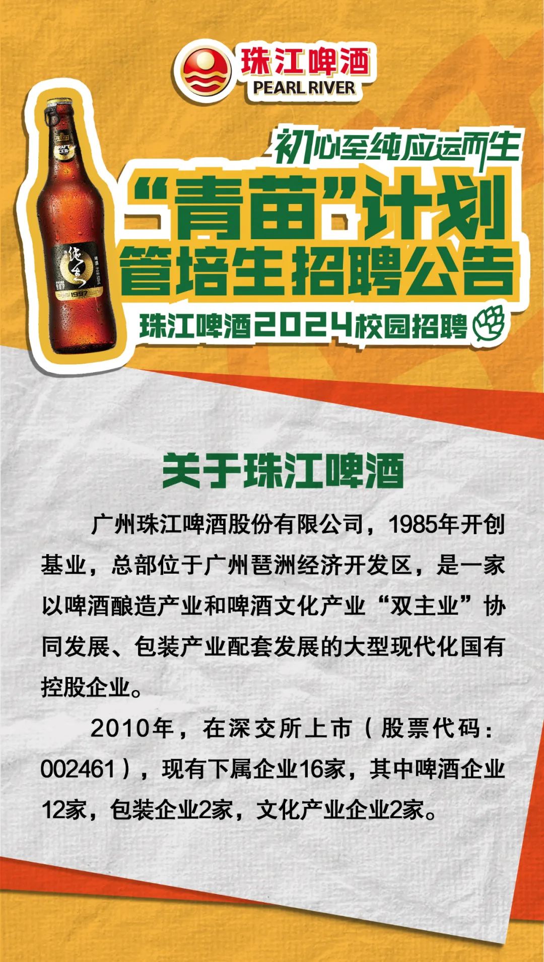 招聘 | 初心至纯 应运而生 珠江啤酒管培生2024届校园招聘
