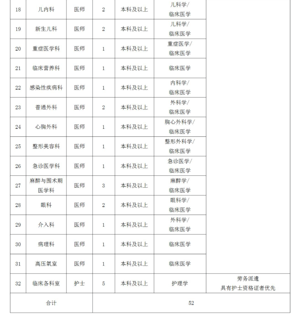 1、学历要求:总院高中起点全日制本科及以上(不含专升本),分院全日制专科及以上。