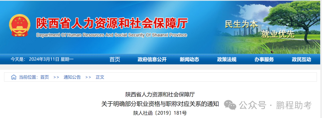 为进一步贯彻落实中共陕西省委办公厅、陕西省人民政府办公厅《关于深化职称制度改革的实施意见》(陕办发〔2018〕2号)文件精神,促进职称制度与职业资格制度有效衔接,减少人才重复评价,现对部分职业资格与职称对应关系通知如下: