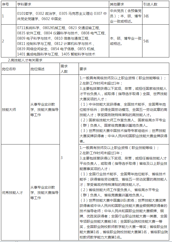 1.高层次人才(博士)有关专业需求