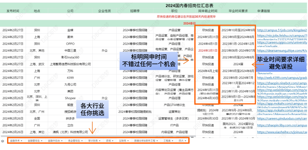 为了让同学们能省下搜集国内春招岗位的时间,澳骄妹也精心准备了这份总结详尽的2024国内春招岗位汇总表
