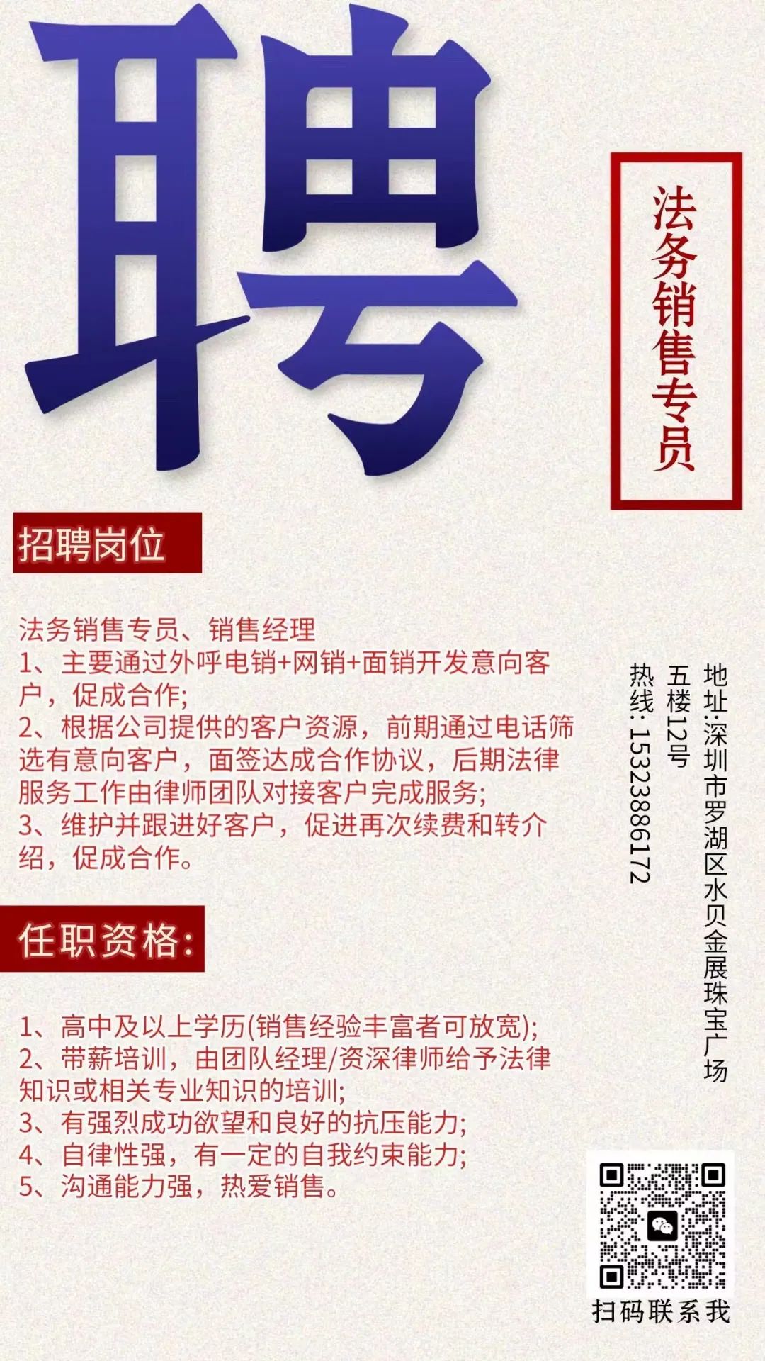联系电话:15323886172 地址:深圳市罗湖区水贝金展珠宝广场 *注:电话联系请说明,是在棉湖圈招聘看到的 1.男工多名,40岁内 2.女工多名,35岁内 计日制,加班另计,设有全勤,奖金等 综合工资3600-7000元 3. 台面包装女工,55岁内 计件+计件提成+每年奖金,生熟手皆可 ,货单急时能接受加班 4.文员,具体面谈 以上岗位不招短期临时 要求:服从安排,身体健康,品行端正,有责任心,上班稳定 ,货单急时能接受加班。提供工作餐 联系手机:13612437819 联系手机:687819 地址:湖西金寰酒店附近,(导航:库奇食品) *注:电话联系请说明,是在棉湖圈招聘看到的