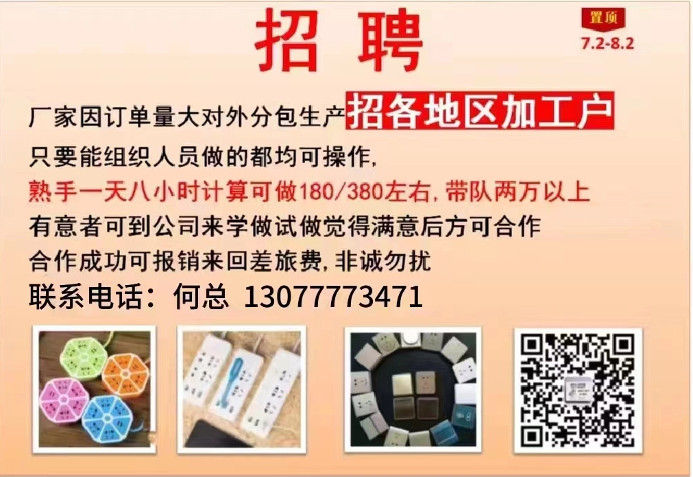 厂家因订单量大对外分包生产,招各地区加工户