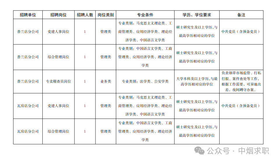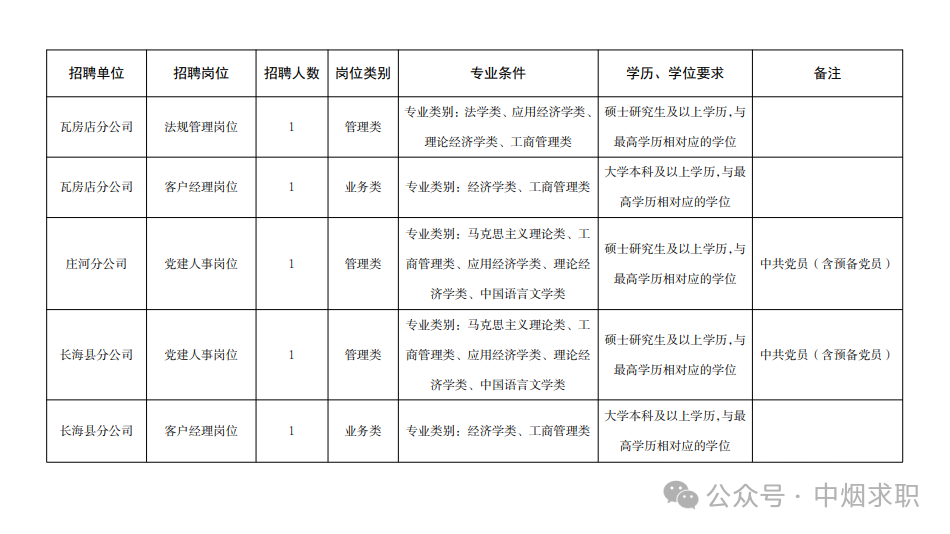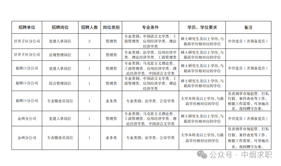 具体招聘单位、岗位、人数、专业条件和学历学位要求等详见附件1:《中国烟草总公司大连市公司2024年高校毕业生招聘计划与岗位信息表》。