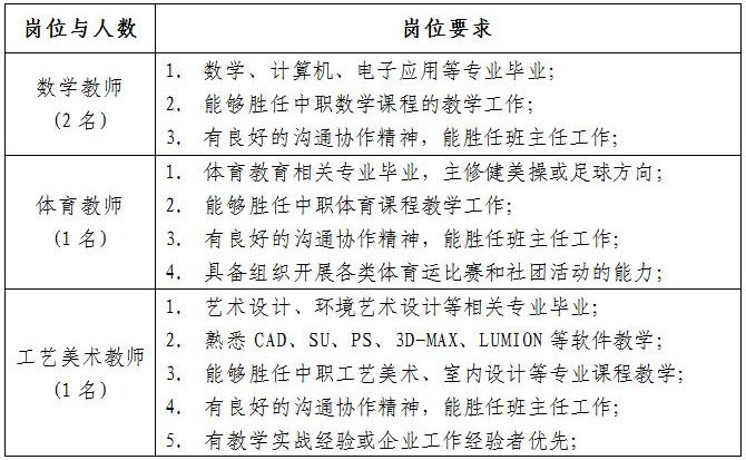 3.学校对报名人资料进行初审,对符合聘用要求,将致电初审合格者前来进行现场资格审查并开展考试工作。考试包括笔试和面试两种形式。