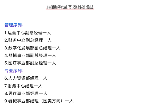 通用技术河南省医药有限公司根据公司业务发展需要,按照“公开、公平、竞争、择优”的原则,现面向公司内外部开展本部部分岗位招聘工作。