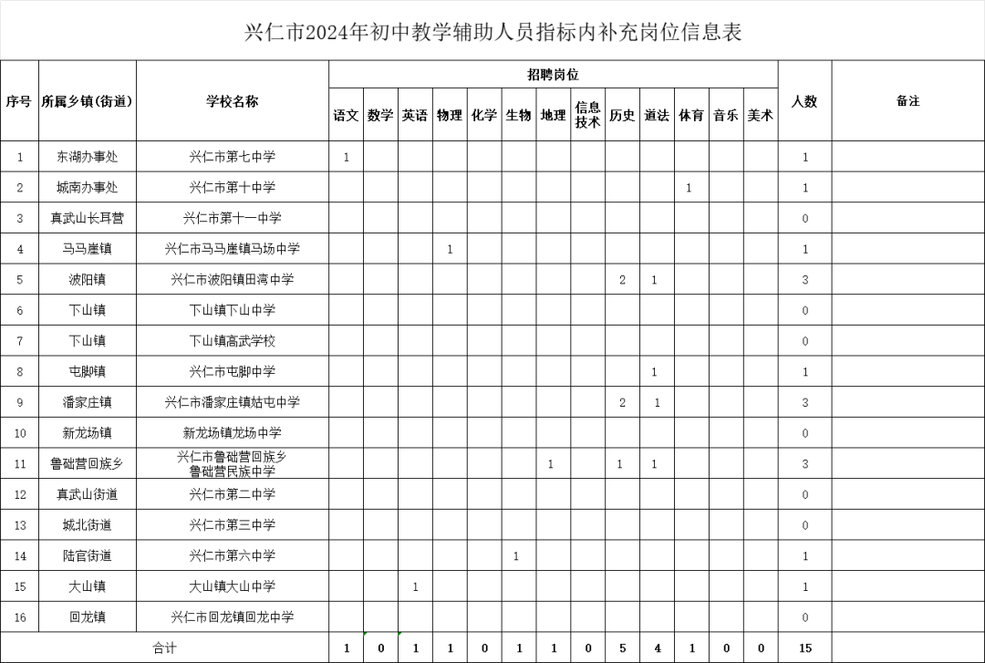 2024贵州兴仁市公办学校编制外教学辅助人员补岗招聘公告