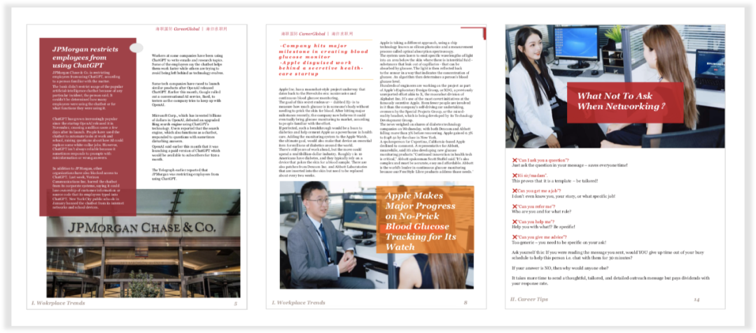 特别声明:©海职国际CareerGlobal®品牌及旗下海归求职网®版权所有,未经版权方允许不得以任何形式使用期刊中的文章、图片、广告或其他内容,包括但不限于电子、印刷或其他媒体。任何其它机构组织如果想进行期刊相关的转载、翻译或解读,请联系我们获取授权。本期刊可公开、免费获得,对私下贩卖期刊等行为我们将追究法律责任。