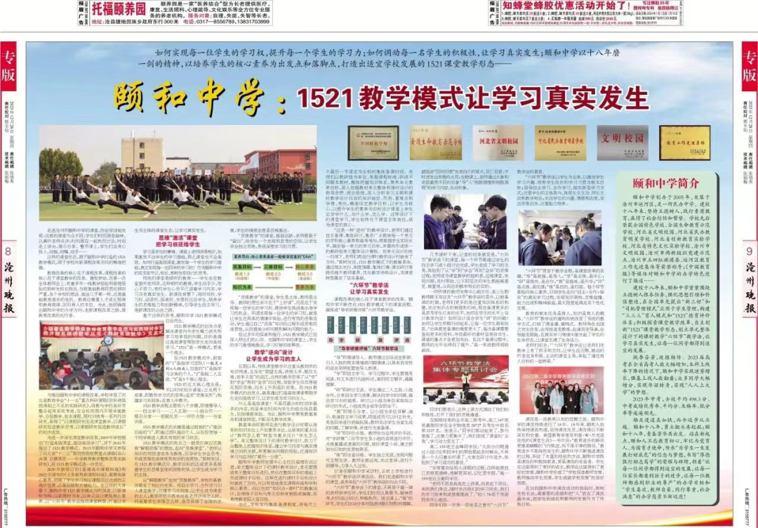 学校先后荣获全国特色学校、全国生命教育示范学校、河北省文明校园、河北省民办教育明星学校、河北省创新教育实验学校、河北省特色文化实验学校、沧州市文明单位、沧州市两新组织党建示范点、沧州市五四红旗团委、运河区教育工作先进集体等荣誉称号;《中国教育报》等媒体对颐和中学的办学特色进行了报道……