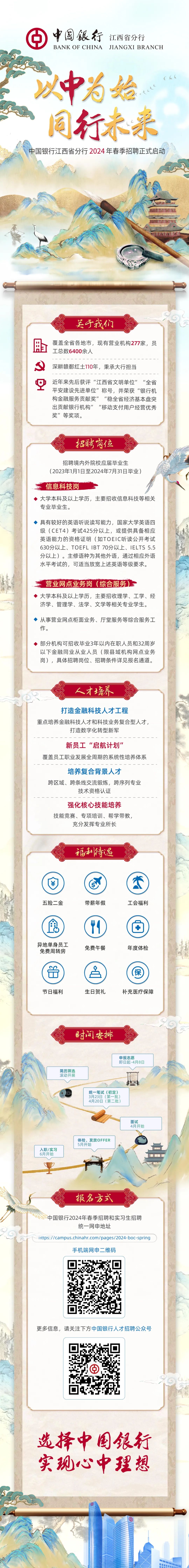 【宜春招聘】中国银行江西省分行招聘!五险二金+节日福利!