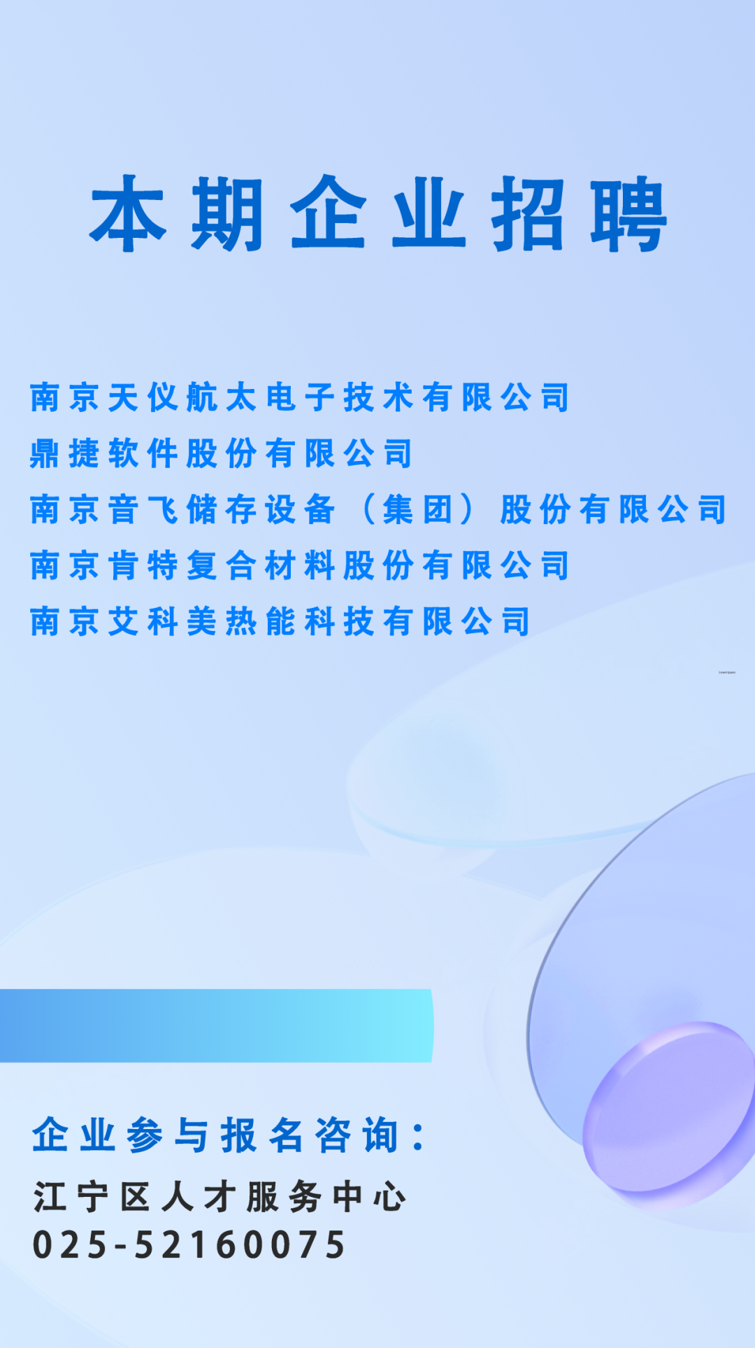 ![]() ![]() ![]() ![]() ![]() 关于江宁 江宁,地处虎踞龙盘的南京城郭之南,奔流不息的浩荡长江之侧,是一座历史悠久、产业兴旺、山水美秀、安居乐业、人才聚焦的新兴城市。 ![]() 宜居之地,幸福故里 江宁同时汇集航空、高铁、港口、轨道、高速五种交通方式,禄口机场雄踞华东,南京南站傲视亚洲,建成及在建轨道交通8条、总里程近300公里。百家湖商圈成为南京第一新兴商圈,园博园、牛首山文化旅游区、金陵小城等一批商业文化综合体精彩亮相。 ![]() ![]() 发展引擎,创业热土 2022年实现地区生产总值3000亿元,连续三年稳居全国综合实力百强新城区第三位,跻身全国创新百强区第六位,位居全国工业百强区第七位;紫金山实验室纳入国家战略科技力量体系,中科院“一院四所”迁入麒麟科创园,集聚国家重点实验室7家;国科大南京学院、东大、南航、中国药科大学等23家高校院所坐落“江宁大学城”,在校师生超35万。 ![]() ![]() 圆梦舞台,宜业高地 江宁高度重视人才、倾情招揽人才,先后集聚诺奖得主11名,建立合作关系院士61名,自主培养国家重点人才工程专家82名,是全省唯一的国家级人才“四基地”;相继推出“暖心7条”“纾困8条”“拼经济促发展9条”,实施“718+1+1”“一件事”等改革破题举措,在稳岗招工、创业贷款、实习见习、职业培训、职工维权等各方面全覆盖。 ![]() ![]() 本期招聘企业(部分) 南京天仪航太电子技术有限公司 南京天仪航太电子技术有限公司是一家高新技术企业,成立于2018年3月,由原深圳矽美半导体技术有限公司(成立于2016年)搬迁到南京,公司除南京总部外,在北京、武汉、合肥、济南等设有销售分部。 公司致力于计算领域DC/DC整体解决方案,在功率电子技术领域,和国际的知名供应商A没有代差。现在已经是国内计算领域第一大供应商,在国产商用CPU,国产FPGA都列为total solutions第一供应商。公司的模拟器件信号链也越来越完整,现有的已经有Logic,LDO,PWM控制器,电压参考,比较器,预计3年内能形成2000个模拟器件料号。主要产品应用于计算与传输、汽车电子、医疗电子、工业自动化、New space新宇航、消费电子六大行业。 ![]() 鼎捷软件股份有限公司 鼎捷软件1982年成立,公司始终秉持创新、尊重、专业的经营理念,在“智能+”整体战略布局下,聚焦制造、流通两大产业领域,以ERP产品和智能制造解决方案为核心,积极推进云领域与工业互联网领域的创新应用研发,助力企业变革运营模式,实践数字化转型。 2020年7月,本着对“创造客户数字价值”的一致认同,公司引进富士康工业互联网股份有限公司成为新的战略投资股东,借此公司在智能制造与工业互联网的布局得以进一步完善,以持续推动IT与OT的创新融合,打造更加成熟的智能工业系统,助力我国制造产业的数字化、智能化转型升级。成立迄今四十余年,公司员工人数达5500多人,其中研发人员超过1300人,实施与服务人员超过1800人。累积客户超过50,000家,在大陆地区稳居生产制造型及智能制造产业ERP产品本土厂商市场占有率领先位置。 ![]() 南京音飞储存设备(集团)股份有限公司 南京音飞储存集团成立于1997年,公司总部位于南京市江宁经济技术开发区,在溧水、天津、重庆、马鞍山设有工厂,在广东、福建、山东、山西、重庆等多个地区建有办事处,覆盖全国各省、市、自治区。公司于2015年6月11日在上海证券交易所上市,凭借多年在智能储存解决方案的经验,南京音飞储存集团已经成为国际先进的智能仓储设备供应商。 高精密货架业务作为公司的核心业务,将一如既往的通过严格的选材、精良的工艺和先进的成本控制方法,使客户利益更大化。 集成业务作为公司战略业务,产品方面,公司现有的子母车系统、四向穿梭车技术、多层穿梭车技术、地面轻型AGV技术、地面重型AGV技术、货到人拣选系统等,不断丰富了自动化单机产品种类,进一步完善了“货架+机器人=仓储系统解决方案”。 ![]() 岗位详情 (含本期所有五家企业) ![]() 扫码查看 岗位详情及投递 就创业支持政策 租房补贴 ![]() 高校毕业生住房租赁补贴,博士每人每月 2000元、硕士每人每月800元、学士(含高级工及以上)每人每月600元(实际租金低于补贴标准的,按实际租金补贴)补贴期限累计不超过36个月。 生活补贴 ![]() 见习期内可按规定享受我市最低工资标准80%的生活费补贴。 创业补贴 ![]() 10万元~50万元青年大学生优秀创业项目资助;对已资助项目中发展前景好的可给予最高 300万元接力投资。 名校优生补贴 ![]() 毕业于世界知名高校或国内“双一流”建设高校(学科)的名校优生,工作满1年,每人2万元~4万元一次性生活补贴。 推荐阅读 星标关注,更快获取长三角资讯 ![]() ![]() 编辑:祥澍 审核:韩莫一 |