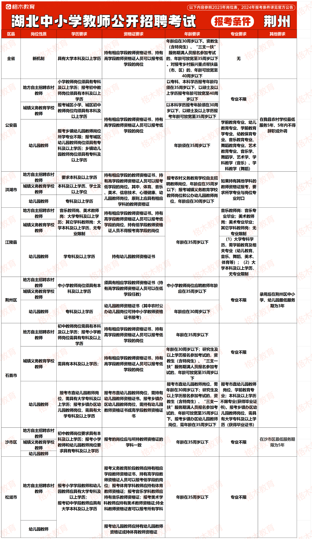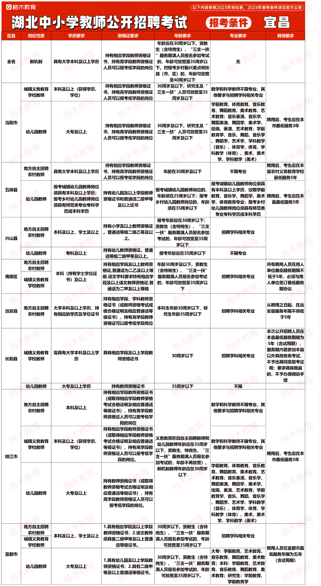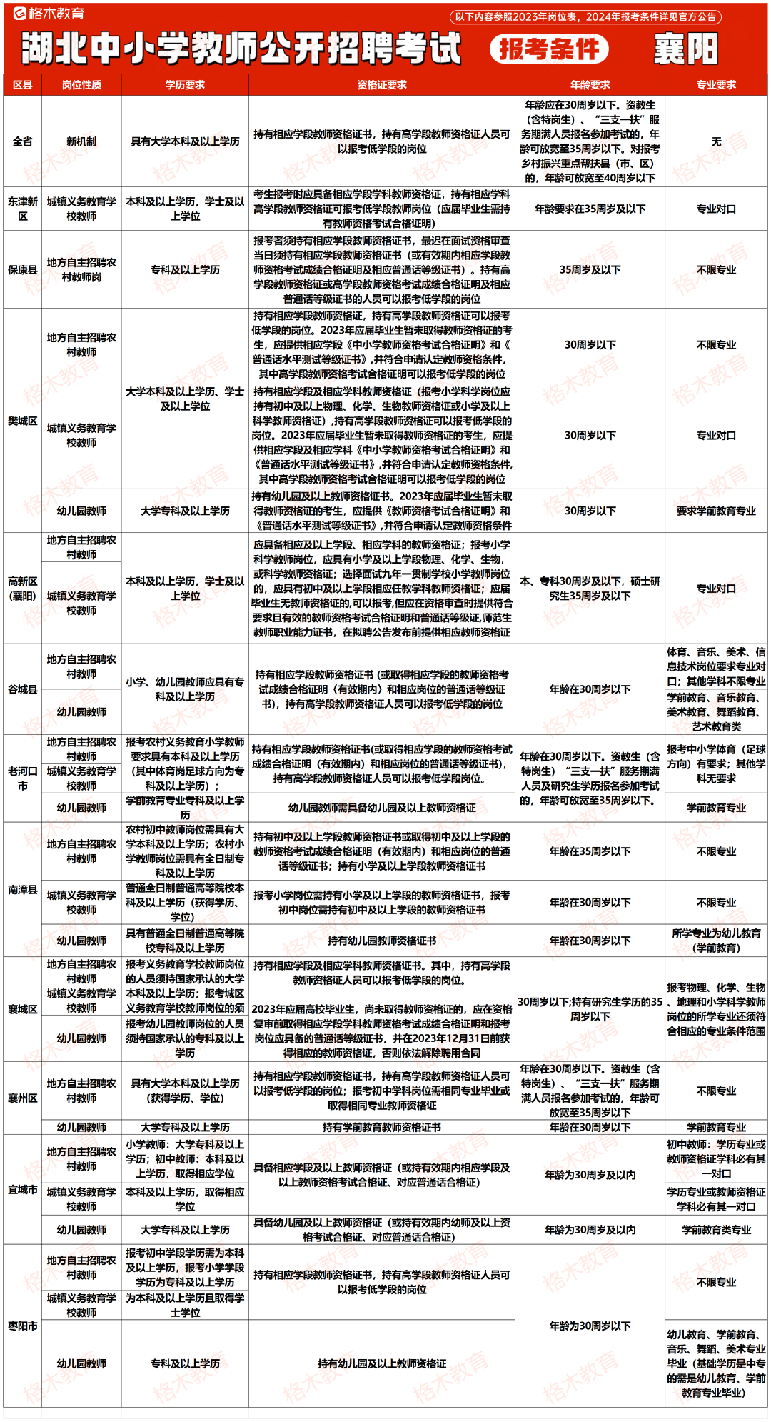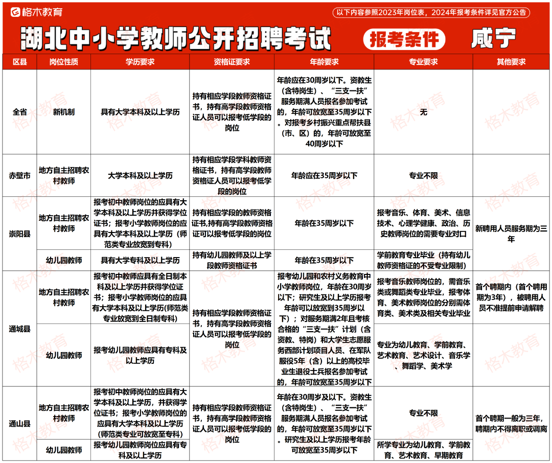 目前湖北中小学教师公开招聘的报考条件相对来说没那么高,大部分地市不限专业,还有一部分地市专科有岗。下面是23年各个地市报考条件,给大家做个参考。
