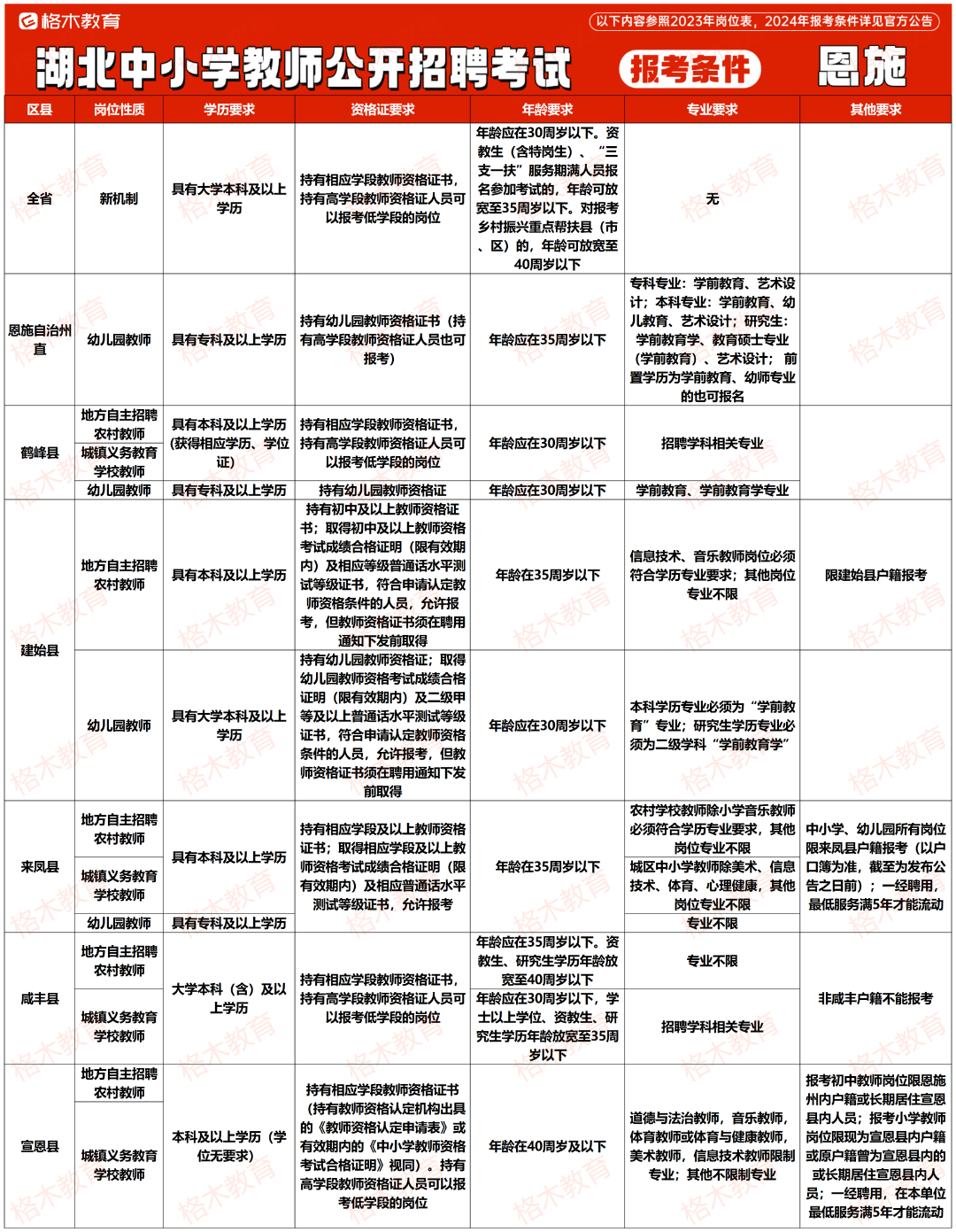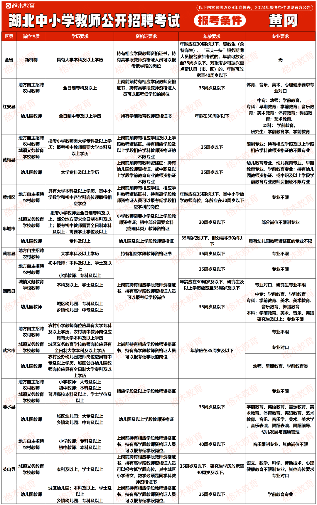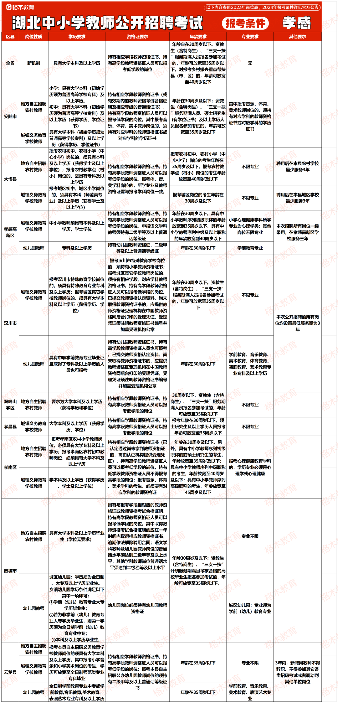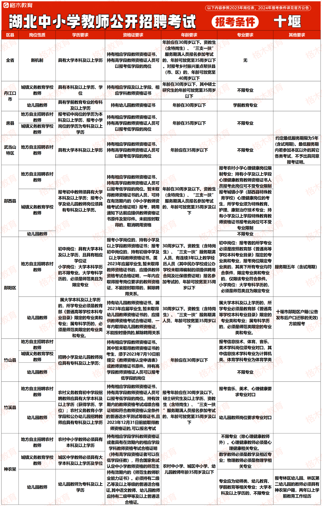 目前湖北中小学教师公开招聘的报考条件相对来说没那么高,大部分地市不限专业,还有一部分地市专科有岗。下面是23年各个地市报考条件,给大家做个参考。