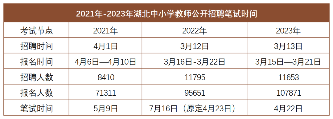 湖北中小学教师招聘(原义务教师)将在4月份进行笔试,大概率在4月中下旬。按照23年的招聘时间线来看,3月中旬报名的可能性比较大。