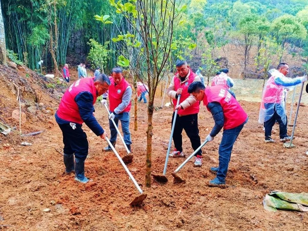 人勤春来早,植绿正当时。为充分发挥民间林长示范引领作用,在我国第46个植树节来临之际,3月10日上午,市林长办在市国有红山林场森林生态综合示范园组织开展“共植、共建、共护绿”市级民间林长植树活动暨第二批民间林长聘任仪式,市民间林长、市林业系统共100多人参加活动。 市林长办主任、市林业局局长陈喜成在聘任仪式上致辞。他指出,自去年11月首批民间林长上岗以来,各位民间林长以守护森林资源为己任,主动参与开展林长制培训和宣传等活动,取得良好成效。此次全市共有43名来自不同行业的热心人士加入第二批民间林长队伍,希望新聘任的民间林长认真履行职责,积极参与森林资源的保护与发展,尽心尽力当好“巡护员”“宣传员”“参谋员”“联络员”“示范员”,共同为林长制工作和绿美潮州生态建设贡献力量。新聘任民间林长代表陈茂青在仪式上作表态发言。随后,民间林长们来到“民间林长示范林”植树点开展植树活动。植树现场,大家热情高涨,相互协作,迅速投入到植树活动中,现场呈现一幅忙而有序的景象。经过一上午的劳作,共种下了落羽杉、紫玉兰、白花绣球、桢楠等苗木100余株。新栽的树苗错落有致,在绵绵春雨中散发勃勃生机。通过本次植树活动,不仅展现了民间林长凝心聚“绿”,热心森林资源保护工作的良好风貌,更彰显民间林长以实际行动助力绿美潮州生态建设,掀起全民绿化美化植树新热潮的信心决心。