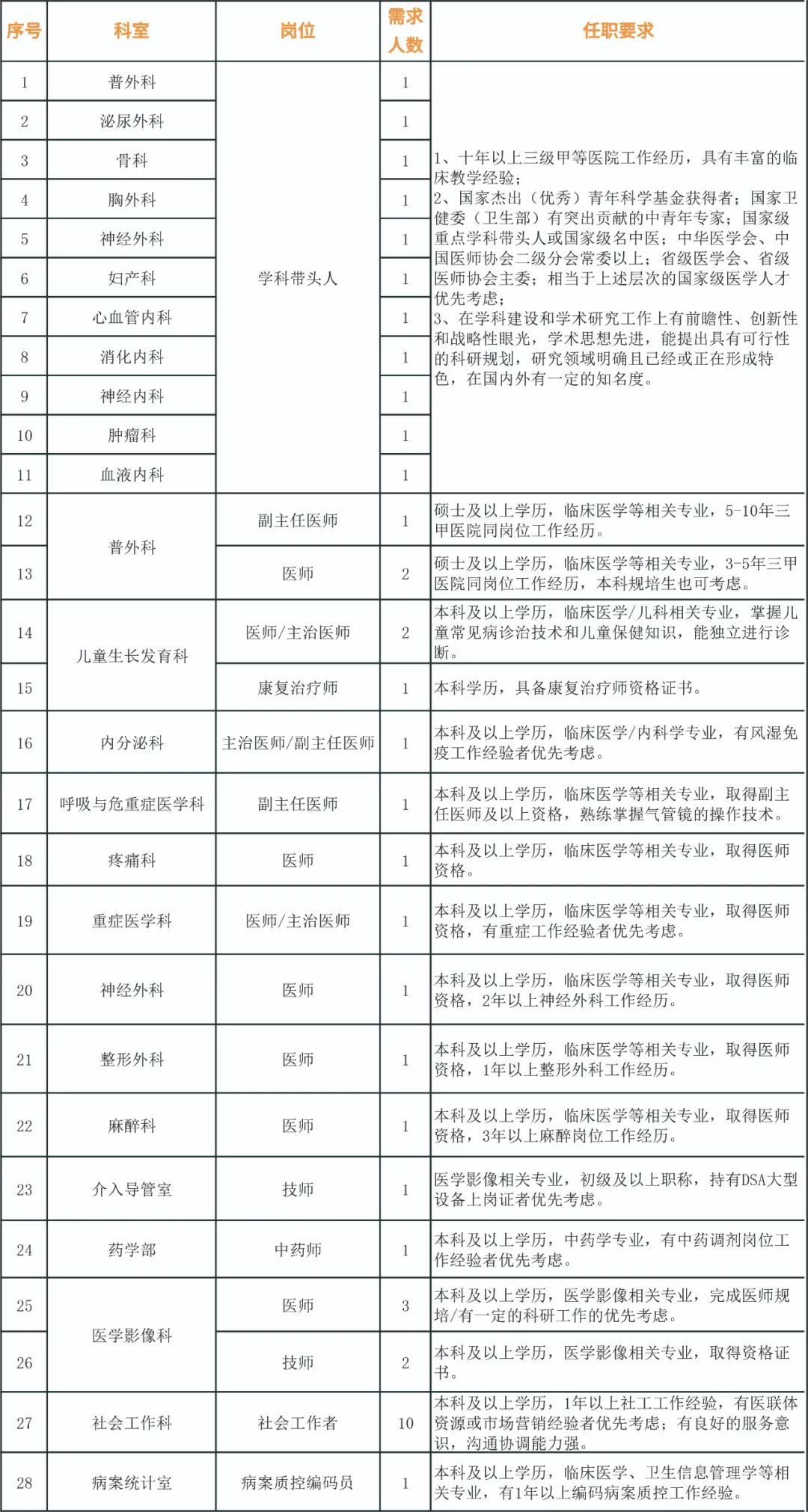 点击关注"延安市招聘"延安市招聘延安市招聘,延安招聘,延安招聘求职的好平台,每日发布考试信息、招聘会、行业动态、人事行政、职场干货、客服、财务销售、快递员、送餐员、外卖员、司机、汽车维修、护理、房产中介、餐饮招聘、普工、保洁、保姆月嫂等工作招聘信息,欢迎您的关注!陕西省长安医院24年最新招聘公告长安医院地处西安经济技术开发区,是由原国家卫生部、商务部批准设置,经国家工商总局注册兴建的一所集医疗、科研、教学和健康保健为一体的三级甲等综合医院,是覆盖全国城镇职工和城乡居民医疗保险及各种商业保险等险种齐全的定点医院。2002年9月开诊,占地面积120亩,目前展开床位1100张,2023年7月长安医院正式并入海吉亚医疗集团,并启动三期建设工程,医院总床位将达到2000张,总建筑面积将达到26万平方米。现有员工1500余名,医疗专家、博士、硕士研究生80余人,中高级职称人才600余人,其中国务院政府特殊津贴专家2人,国家级、省级专科学会副主委专家15人。 医院开设有42个临床医技科室,肿瘤科、重症医学科入选市级临床重点专科建设项目,形成了以肿瘤科、普外科、泌尿外科、骨科、消化内科、心血管内科、心身科、肾内科、妇科、呼吸内科、内分泌科、儿科、急诊科等为特色的优势学科群。医院先后通过国家胸痛中心、国家标准化心脏康复中心、国家标准化代谢性疾病管理中心评审,被授予中国前列腺癌联盟前列腺癌诊疗一体化中心、中国卒中中心联盟综合卒中中心、中国抗癌协会肿瘤临床医药科普基地、全国早期胃癌筛查应用研究中心、全国健康管理示范基地、国家临床医学研究中心精神心理疾病联盟单位、中国心身医学整合诊疗中心等。2023年12月成立长安肿瘤医院,以MDT多学科联合诊疗模式为特色,集合全国、全军优秀专家资源开展多学科联合会诊,制定个性化诊疗方案,提高患者生存率,一站式看诊减少重复诊疗,节省费用开支,提高患者满意度。相继引进美国GE PET/CT、Revolution CT、3.0T磁共振、新光纤1.5T磁共振,荷兰飞利浦3.0T磁共振、日本奥林巴斯系列设备(CV-290内镜检查系统、无痛高清电子膀胱软镜、4K超高清腹腔镜、GF-UCT260超声内镜)、螺旋断层放射治疗系统TOMO、陀螺旋转式立体定向放射治疗系统、Elekta Infinity加速器等世界先进的医疗设备,为高效、严密、精准诊疗提供有力支持。长安医院将紧紧围绕海吉亚医疗集团“让生命更健康,让医疗更温暖”的愿景,秉承“说实话,办实事,讲诚信”的价值观,以核心技术打造学科品牌,持续提升医疗服务品质,立足西安、服务陕西、辐射西北,为护航百姓健康不断助力!一、岗位需求