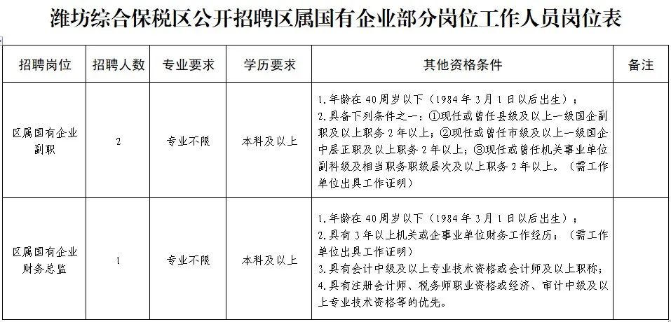 本次招聘计划为3名:区属国有企业副职2名、区属国有企业财务总监1名,具体岗位要求见附件。具体招聘条件及招聘程序请点击文末“阅读原文”查看。