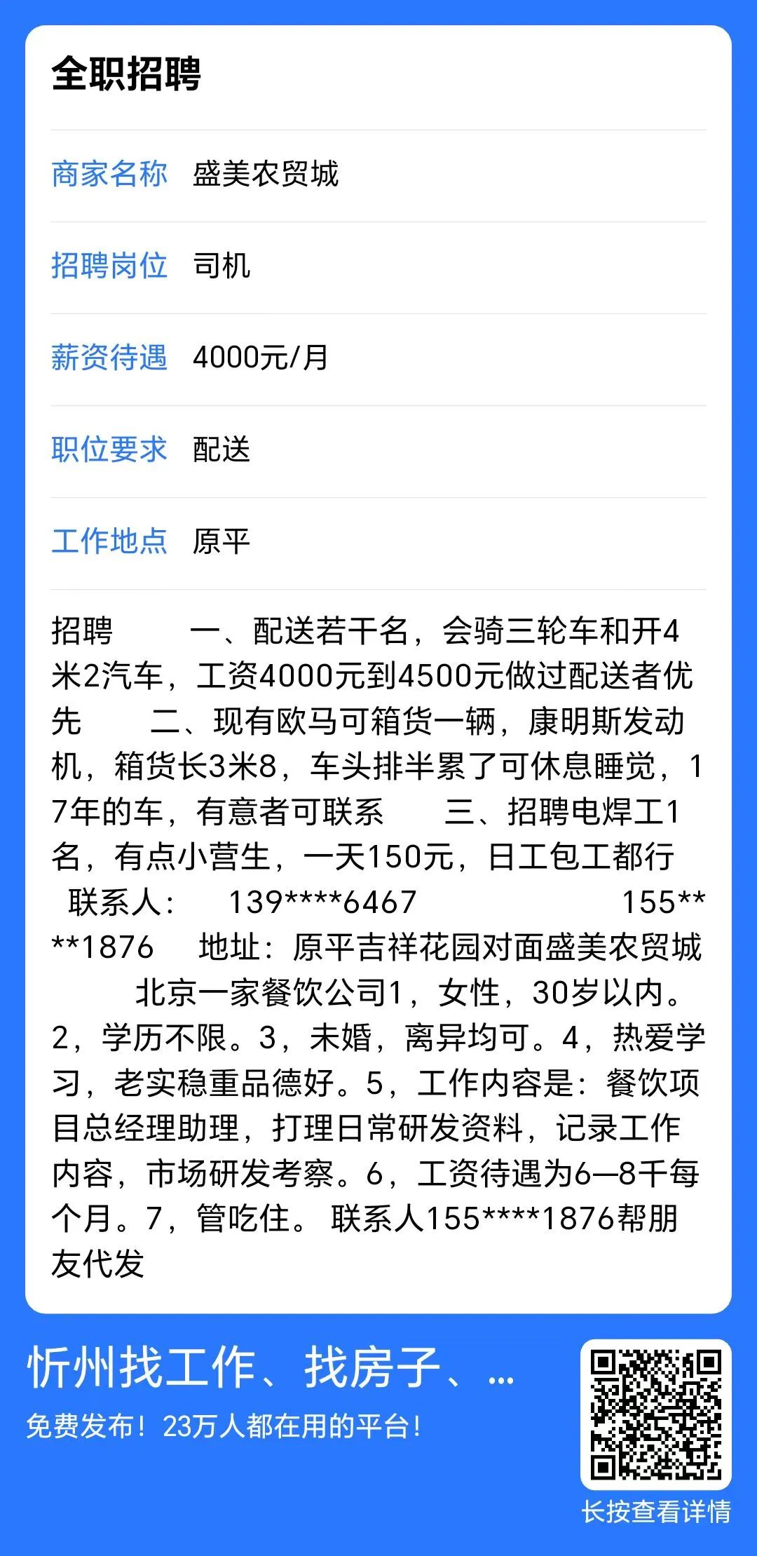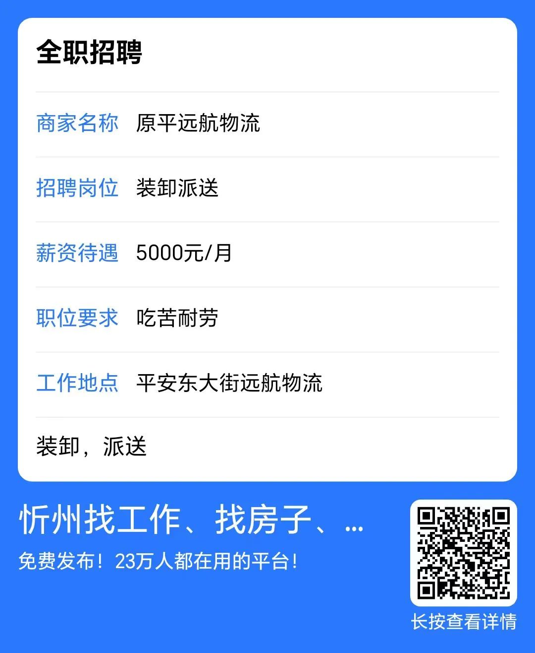 原平招聘关注哦 ☀关注原平招聘,通过原平招聘,在原平招聘能快速招到大量合适人才,在原平求职能快速找到好工作!