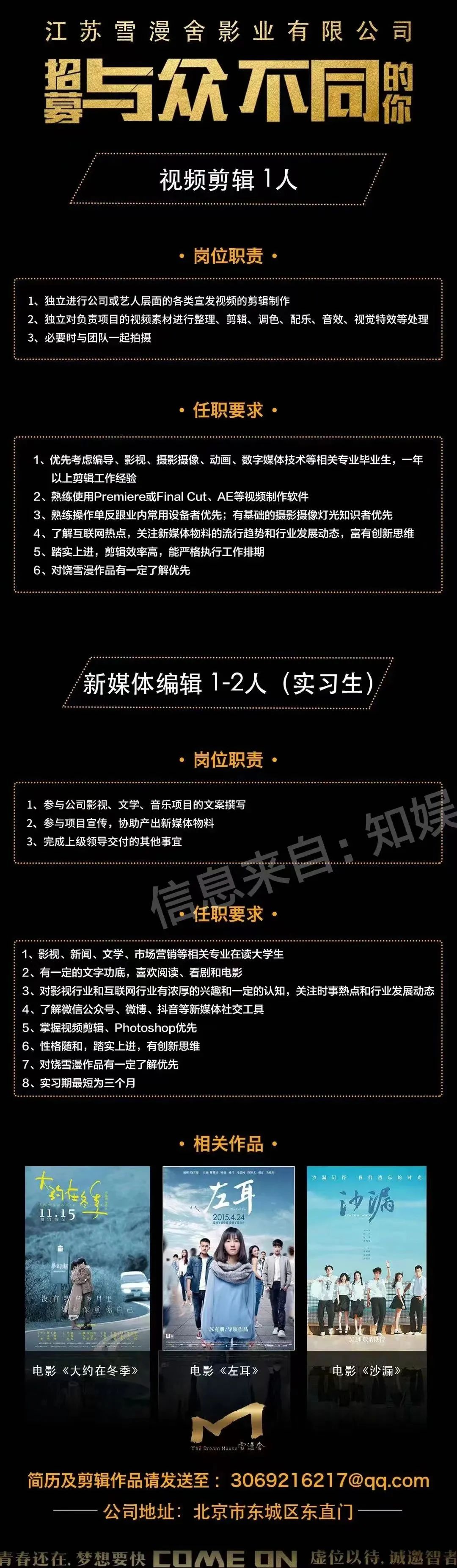 校影|24.03.11影视企业招聘信息「全职&实习生」