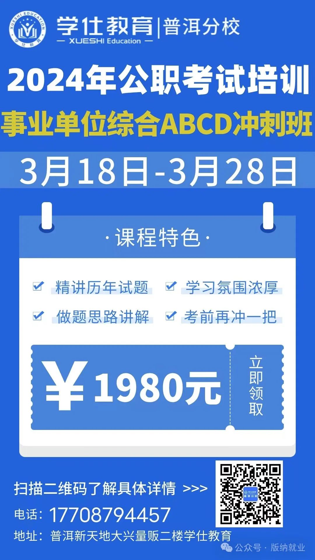 2.事业单位A/B/C/D类网课已经上线,没有时间上线下课的同学备考起来啦!扫码购课(早备考早上岸)299纸质版资料包邮到家!