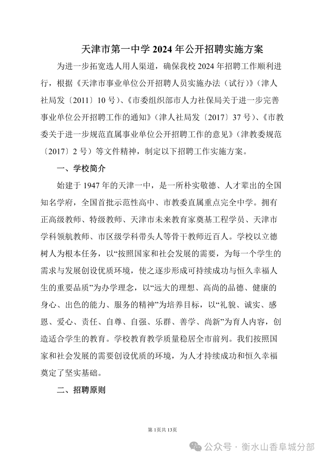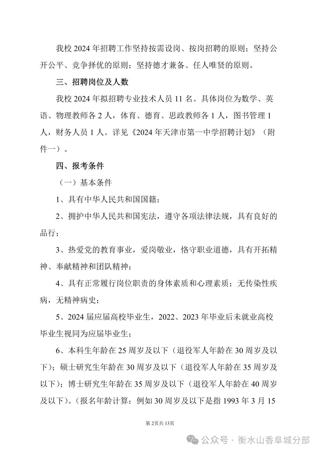 附件一:2024年天津市第一中学招聘计划.docx