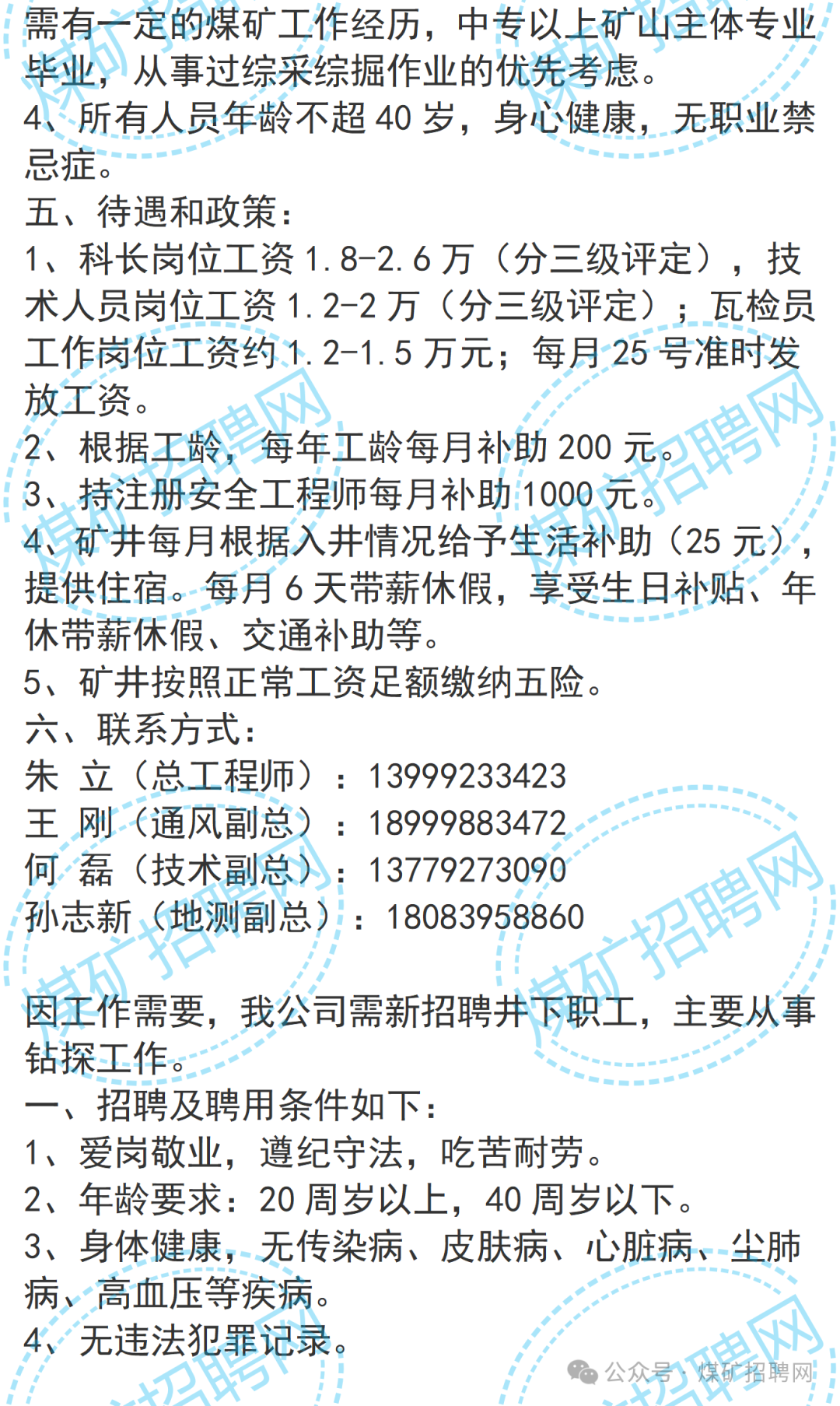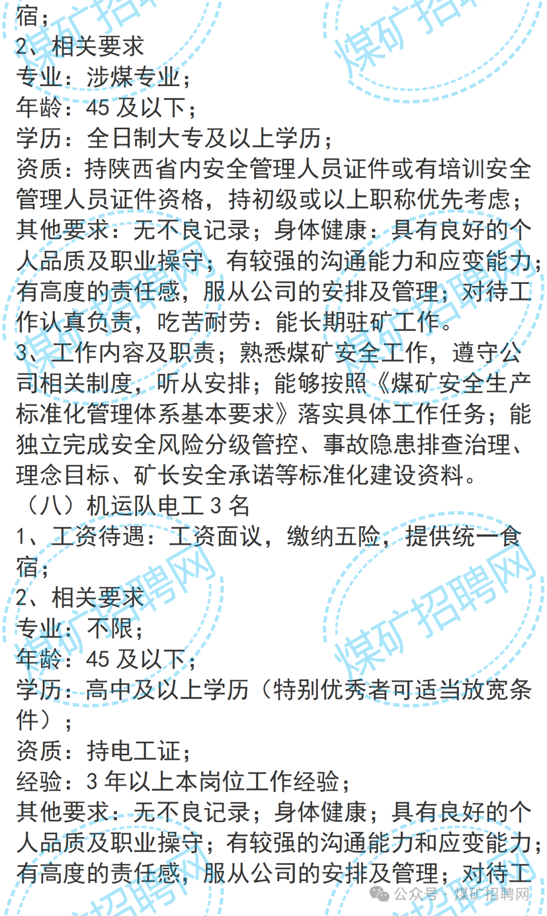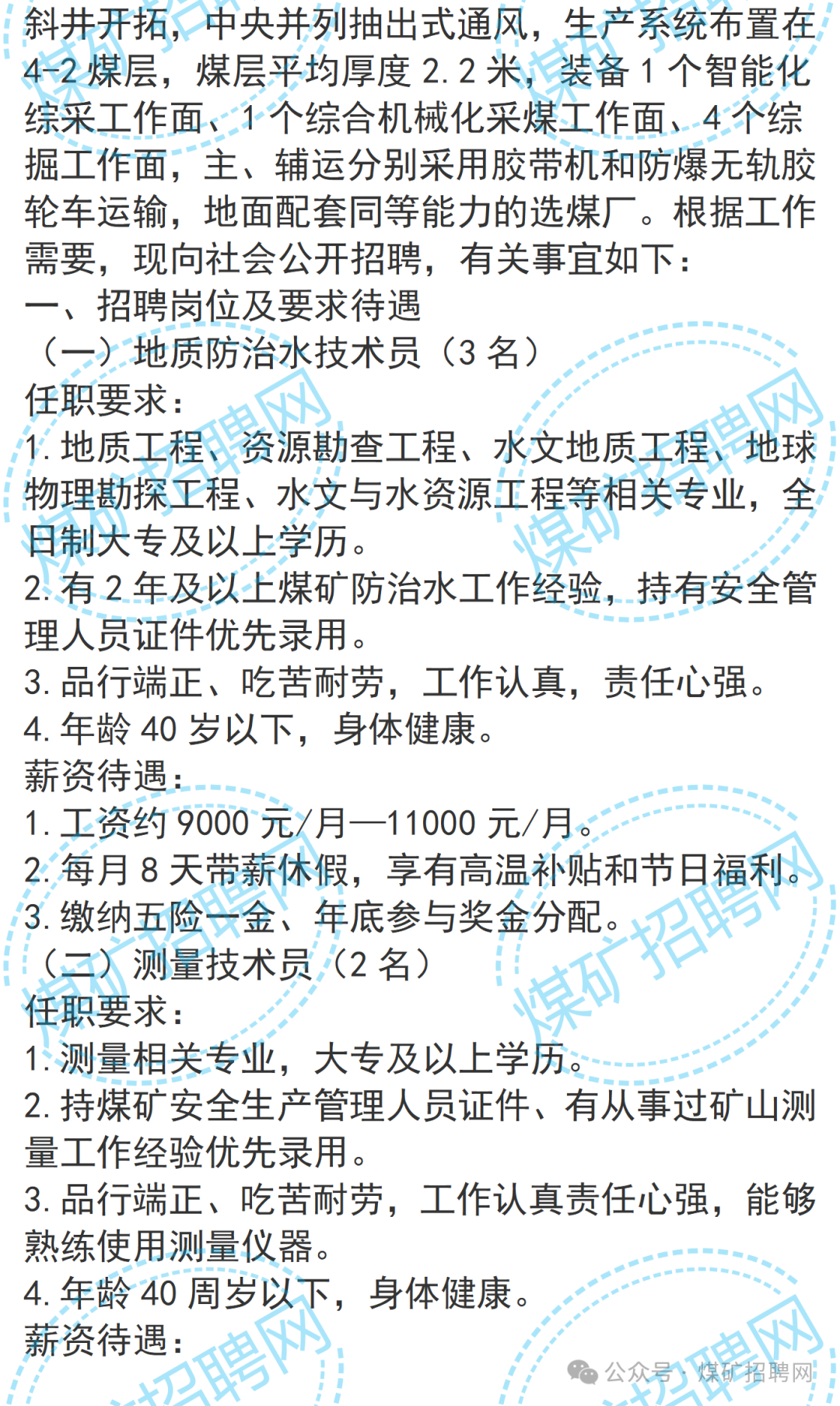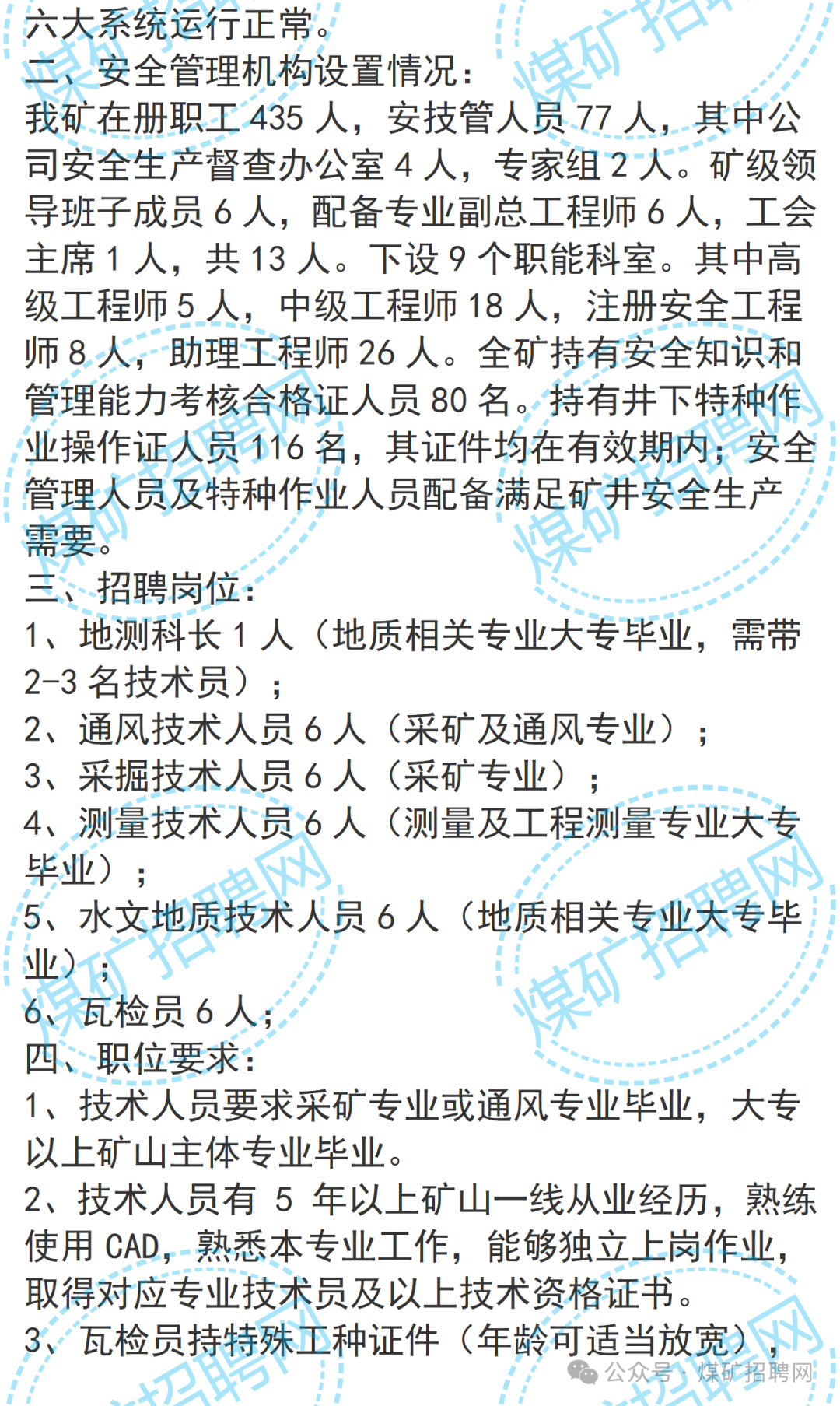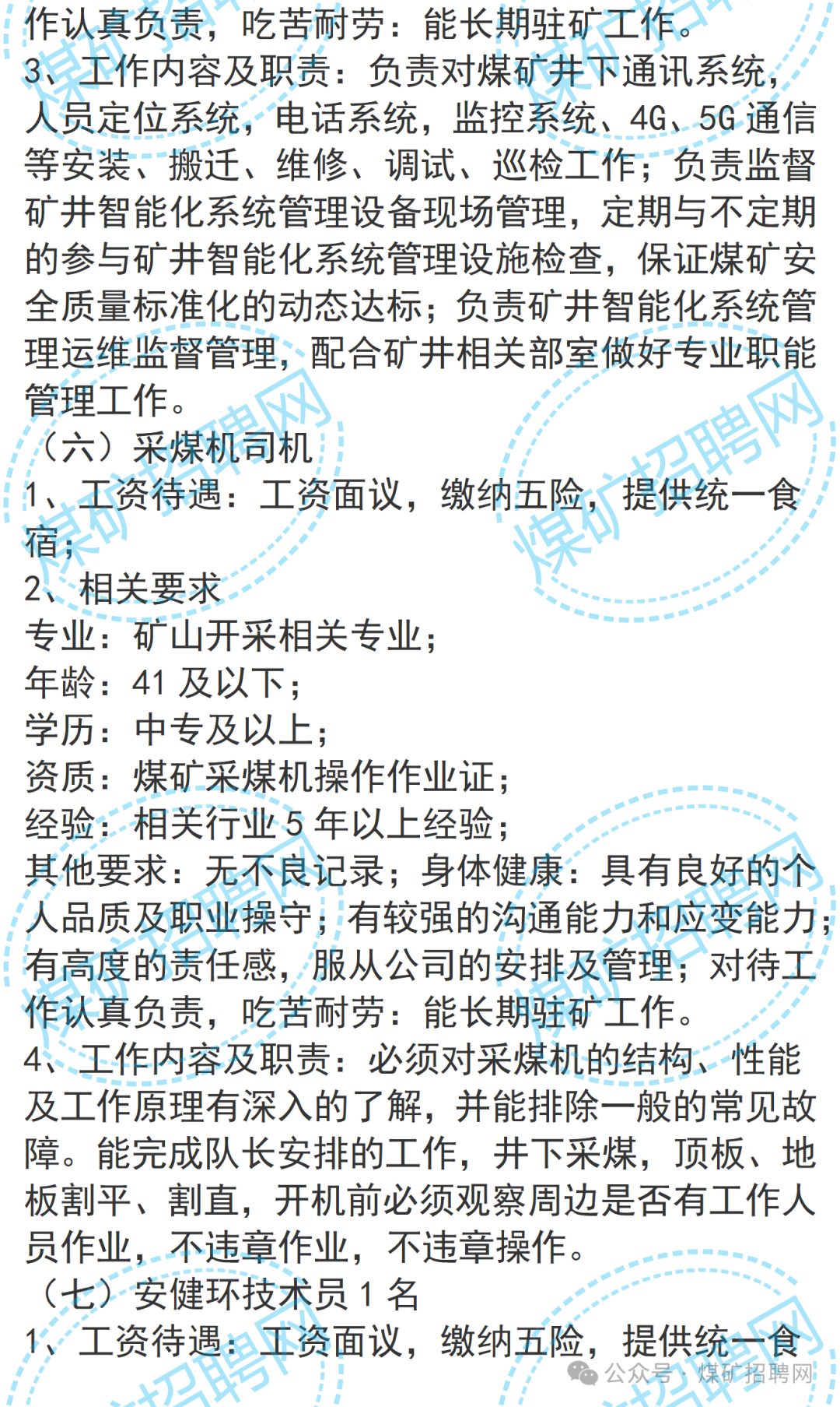 应聘基本条件:1.大专以上学历,2.持安管证;3.5年以上煤矿同岗位工作经验;