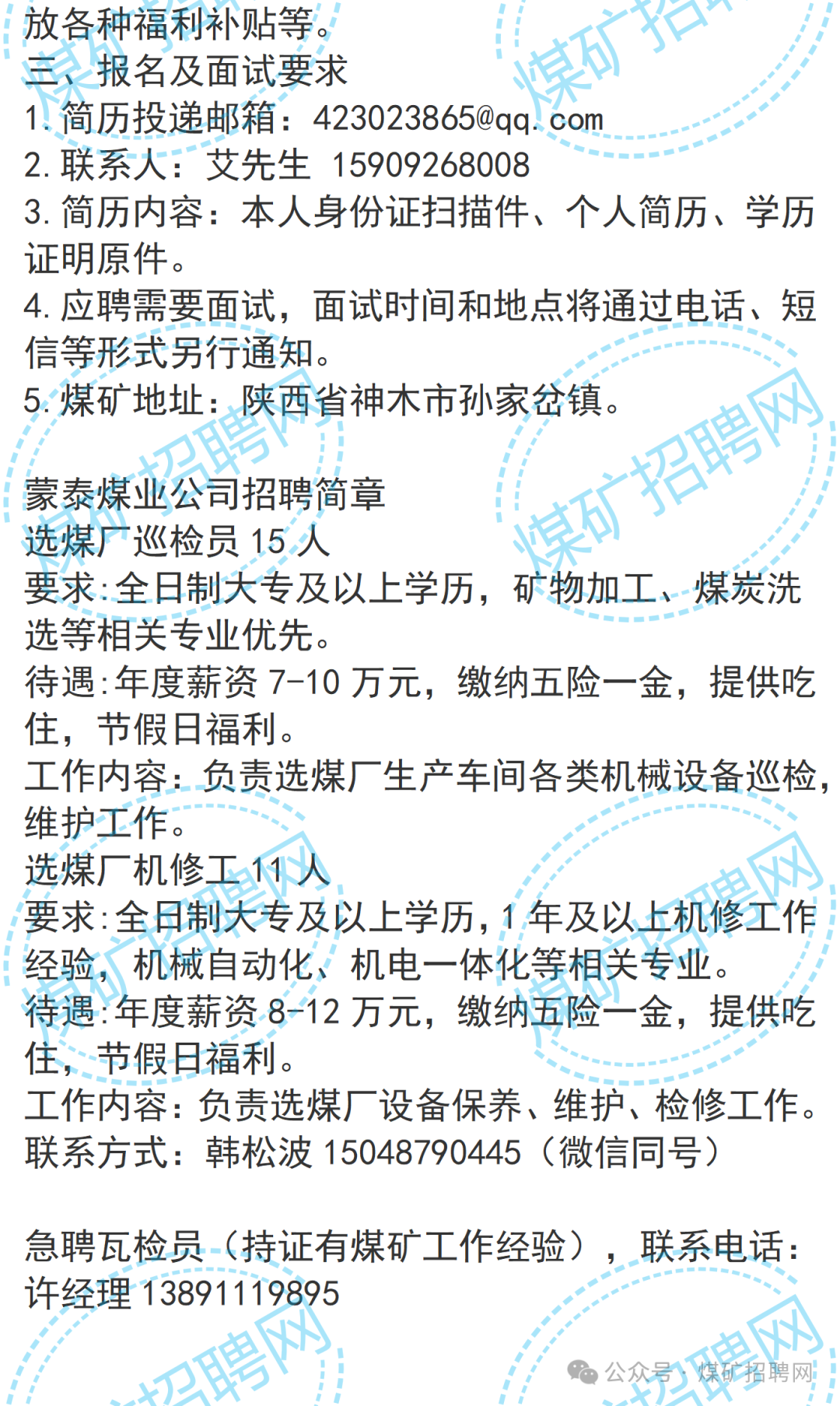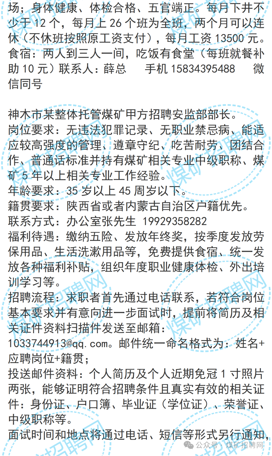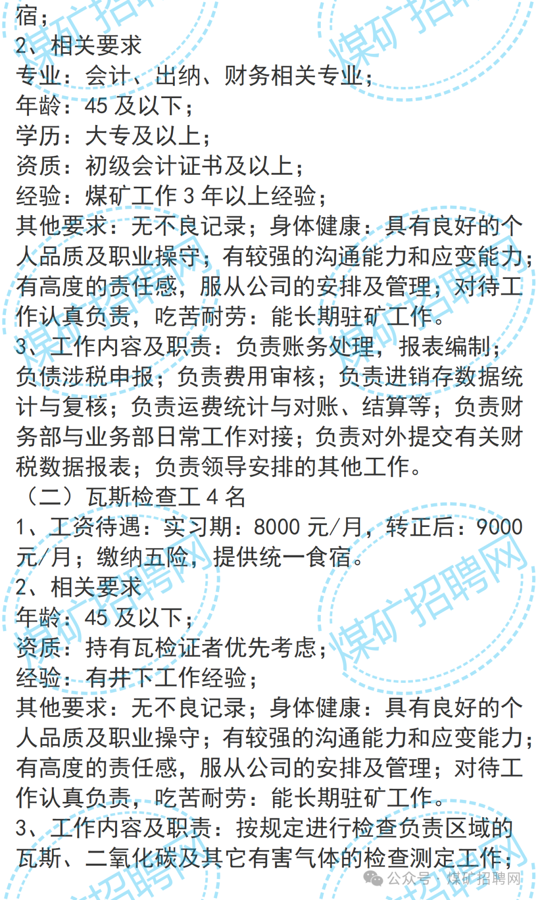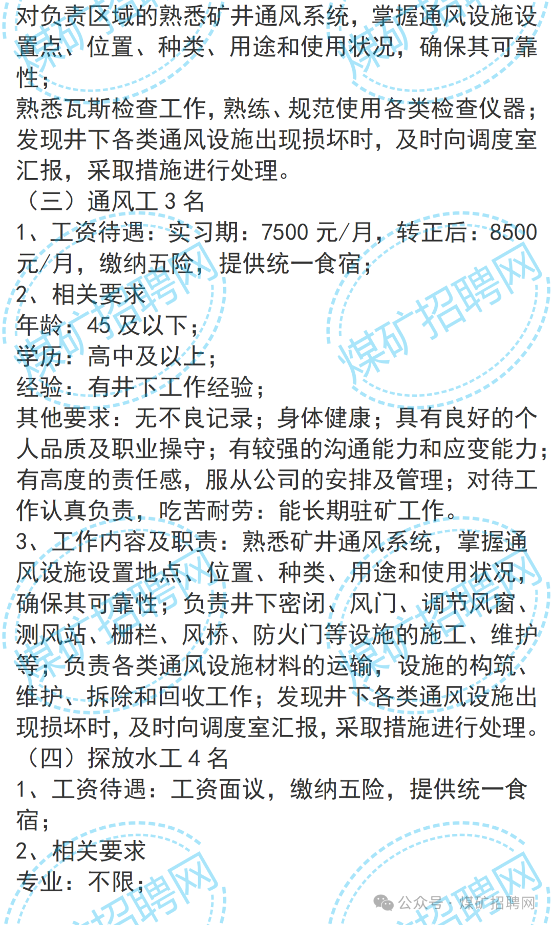 应聘基本条件:1.大专以上学历,2.持安管证;3.5年以上煤矿同岗位工作经验;