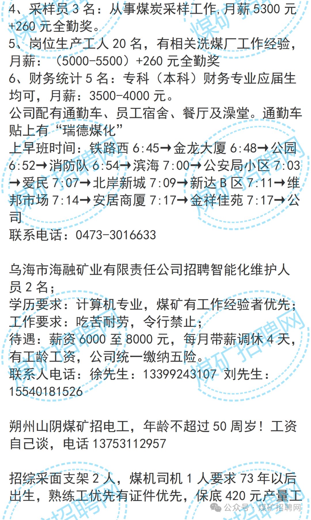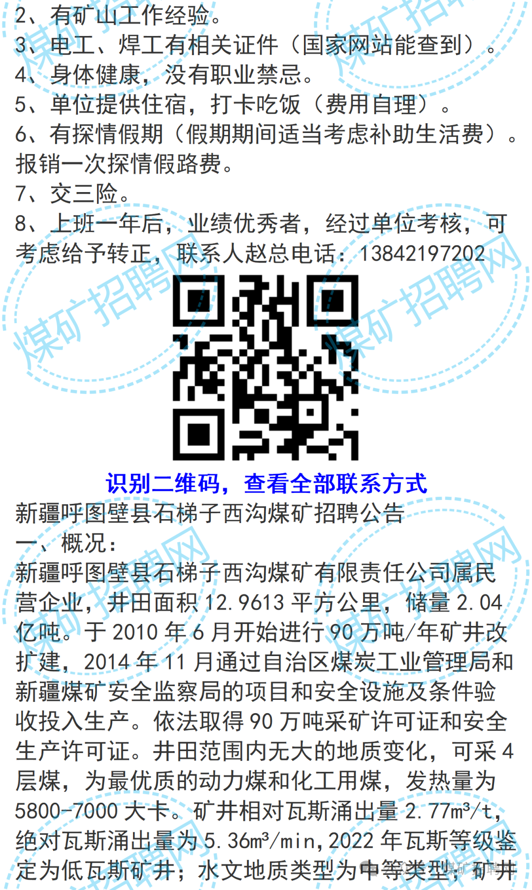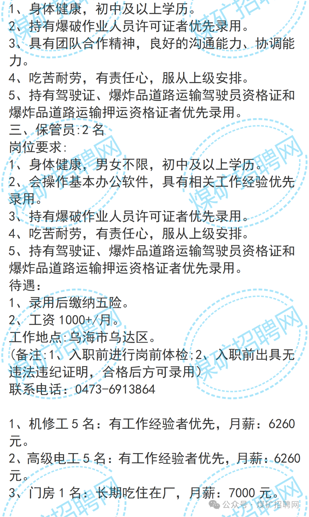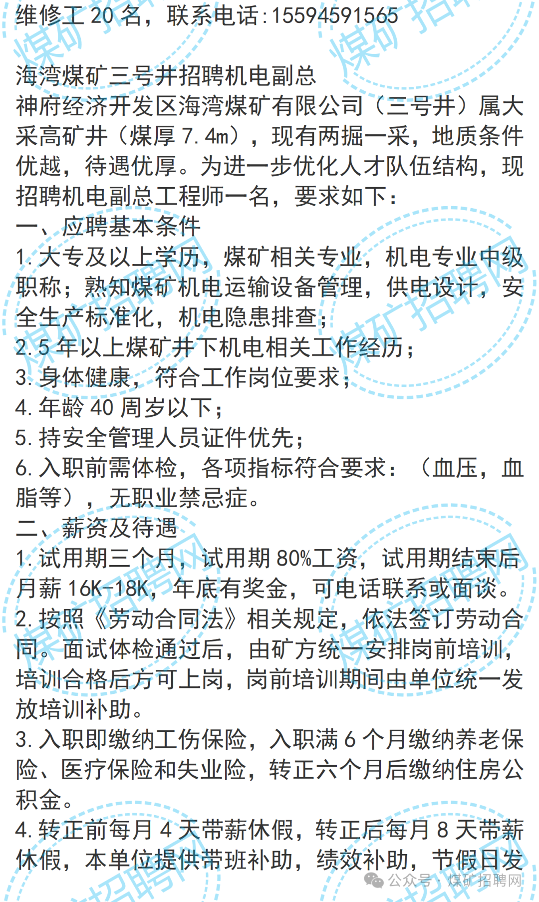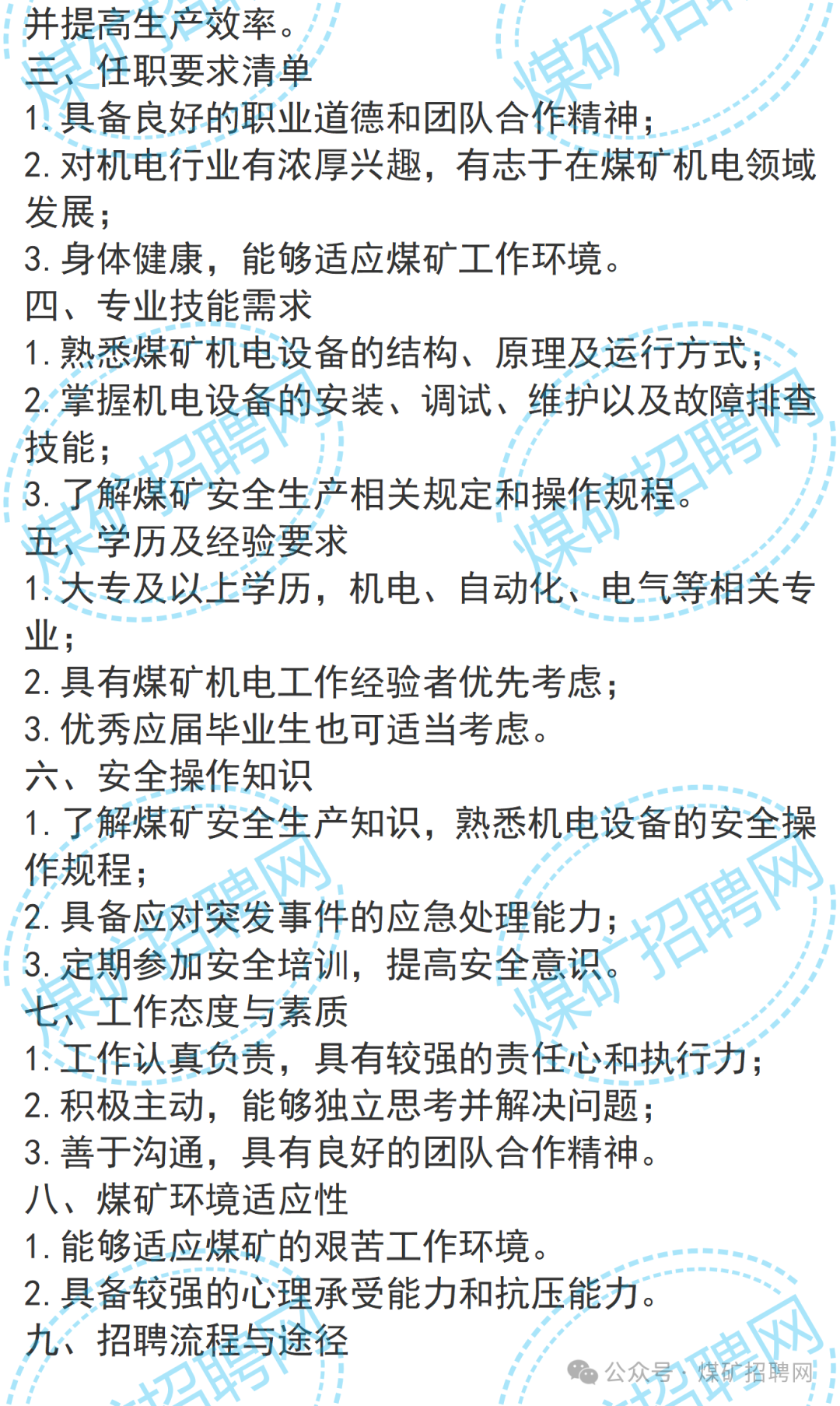 应聘基本条件:1.大专以上学历,2.持安管证;3.5年以上煤矿同岗位工作经验;