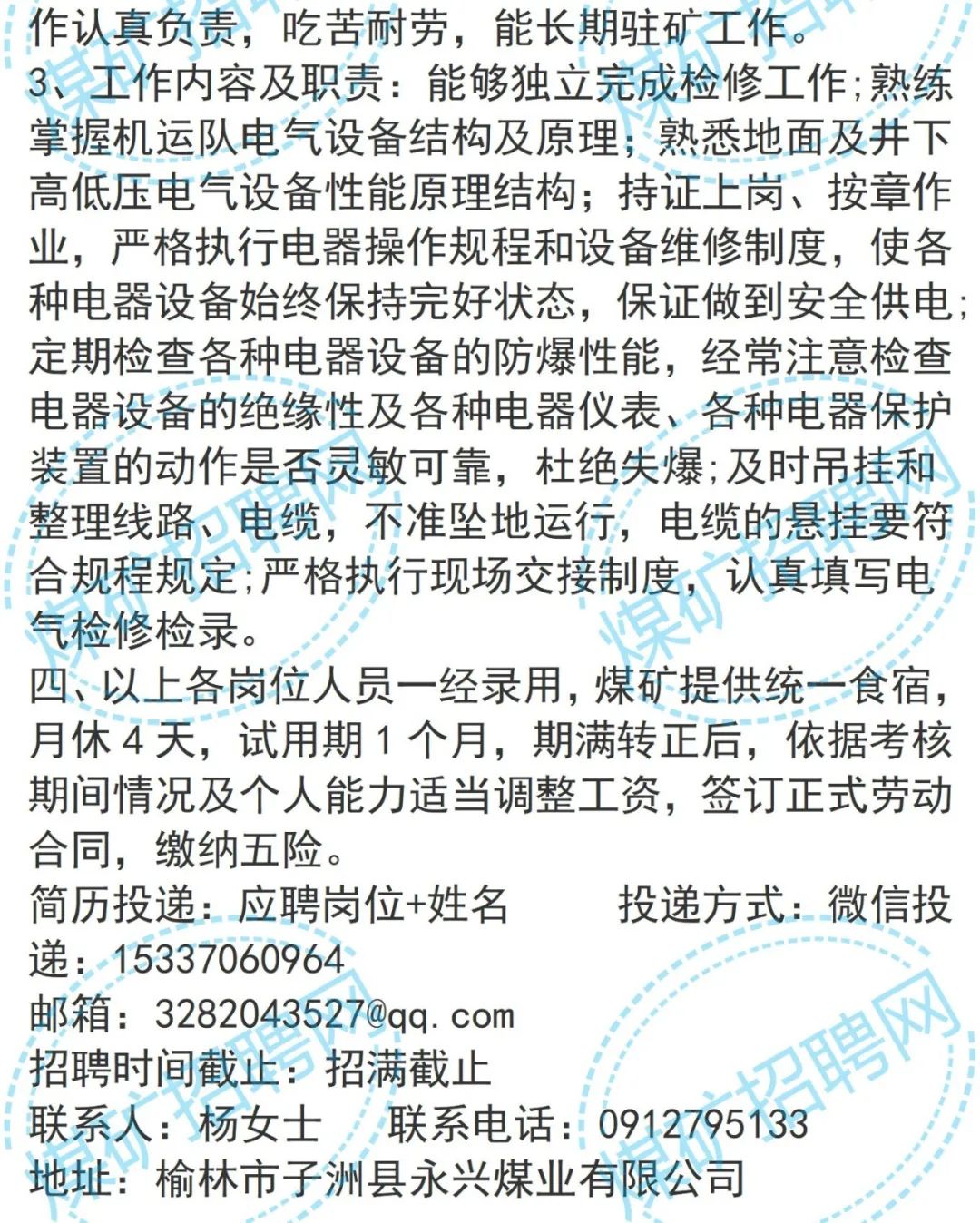 陕西省榆林市榆阳区胜利煤矿招聘;工作地点:陕西榆林市榆阳区胜利煤矿,现招聘如下: