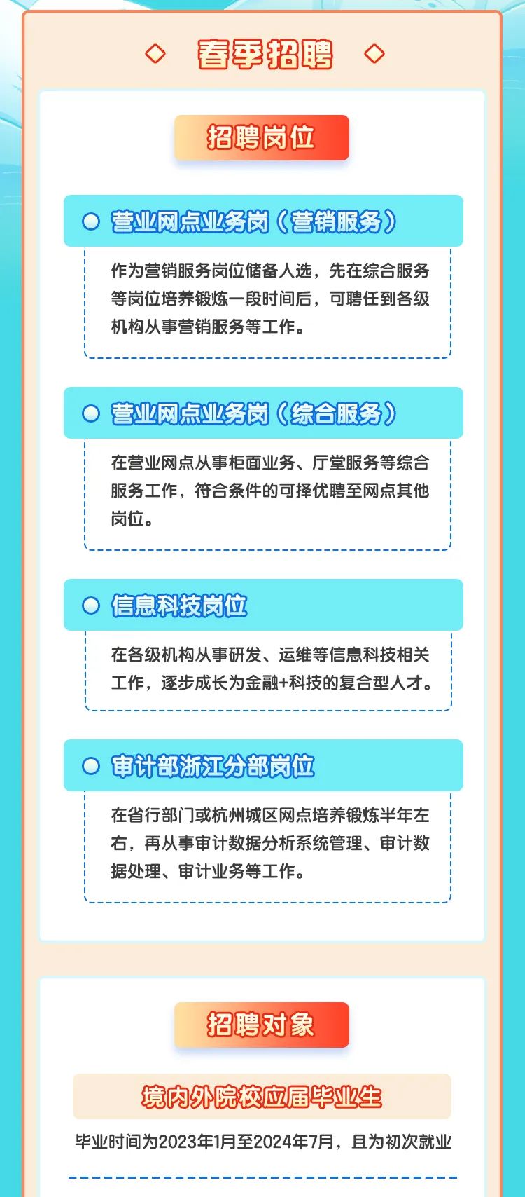 招聘岗位:营销服务业务岗、综合服务业务岗、信息技术岗、审计岗等