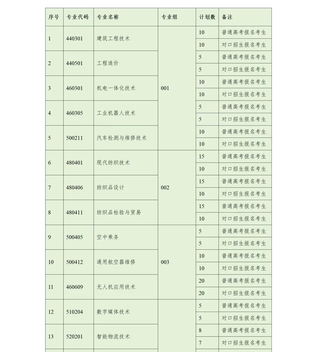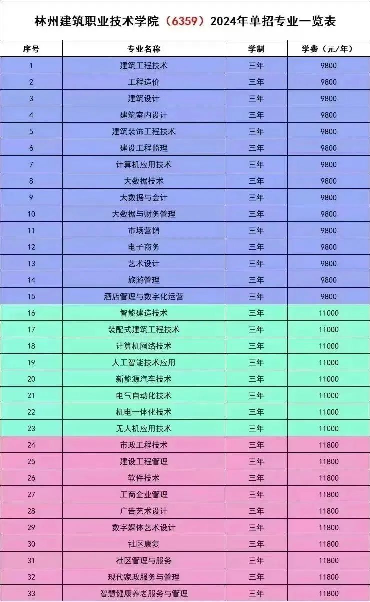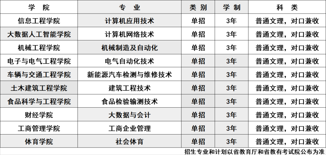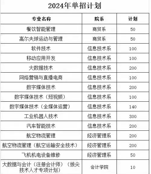 2024年单招招生专业