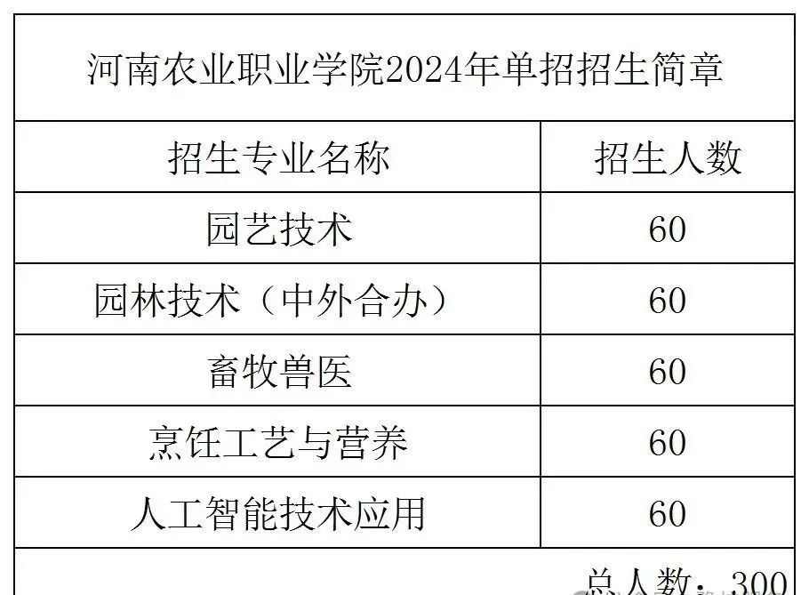 23.河南农业职业学院2024年单招招生专业