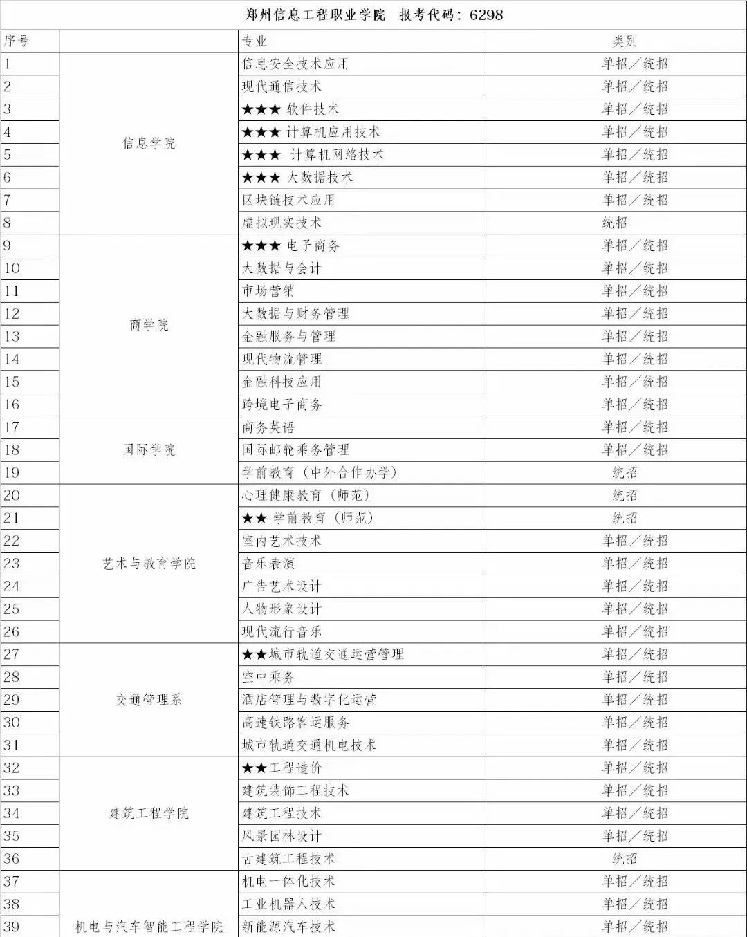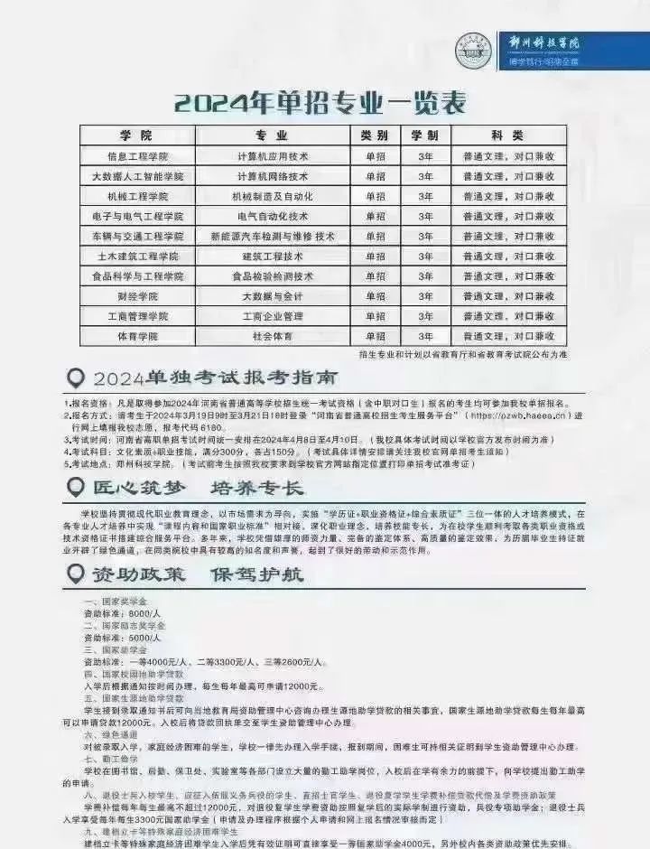 2.郑州科技学院2024年单招招生专业