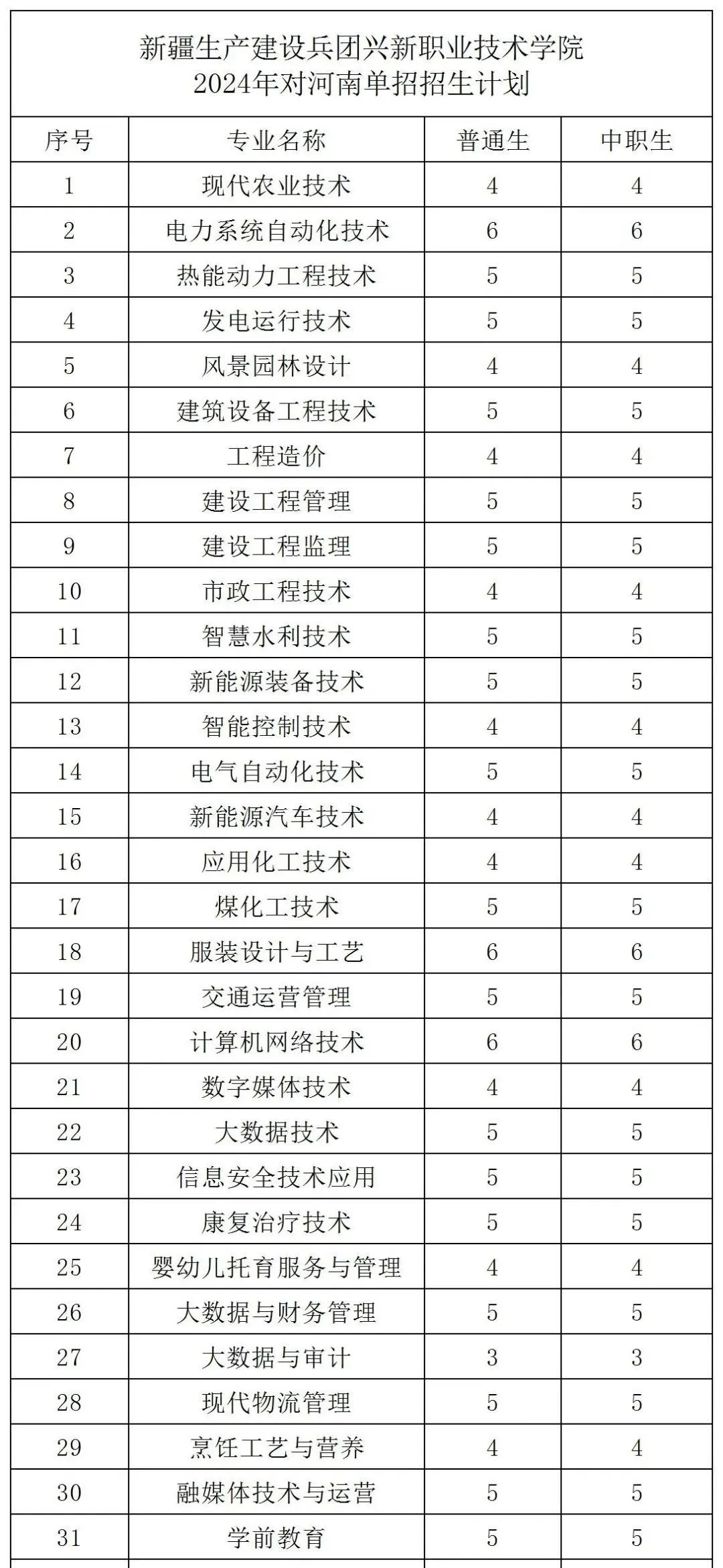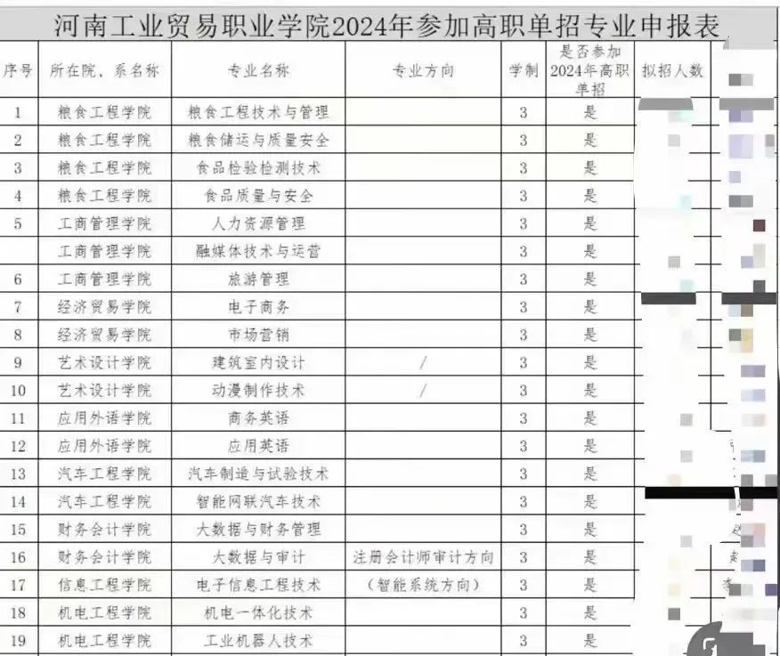 2024年对河南单招招生计划