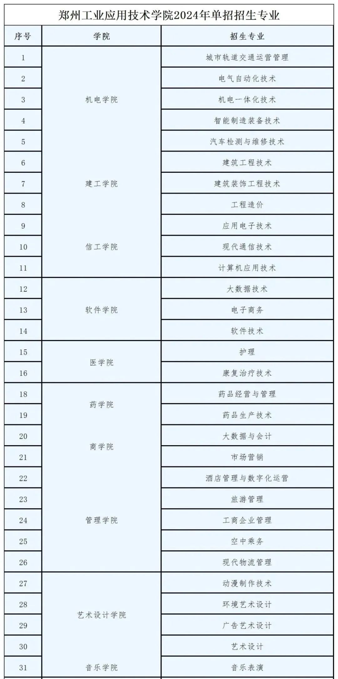 1.郑州工业应用技术学院2024年单招招生专业