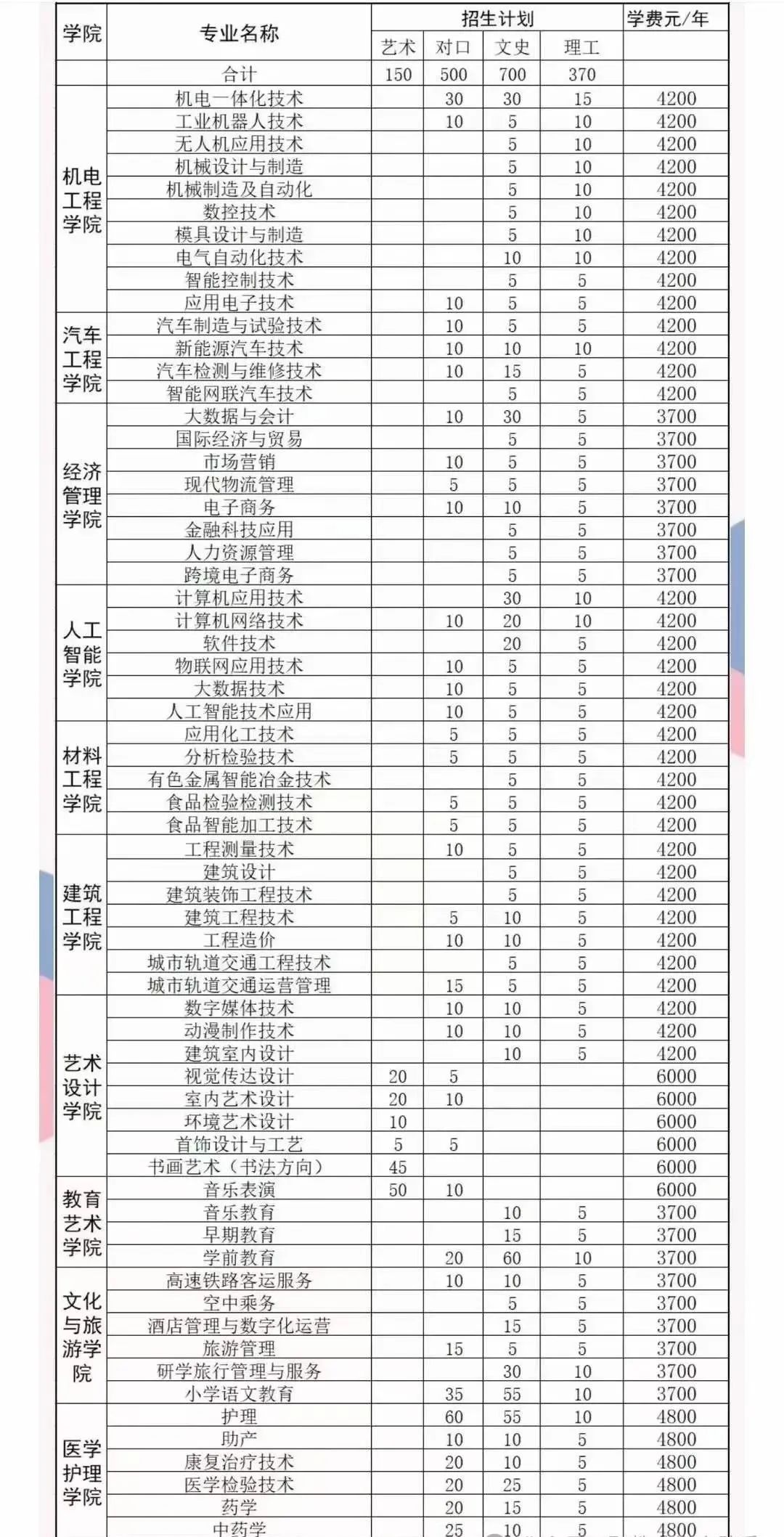 2024年学院在河南省单独考试招生专业17个,计划310人,具体招生专业及计划如下。