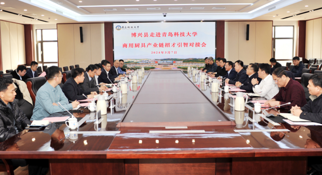 3月7日,山东人才集团组织开展的博兴县走进高校招才引智对接活动在青岛科技大学崂山校区举办。学校党委常委、副校长吕万翔,山东人才集团党委委员、副总经理何伟,博兴县人大常委会主任、商用厨具产业链链长刘方太等出席活动并致辞。