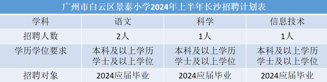 广州市白云区2024年上半年在长沙公开招聘中小学事业编制教师公告