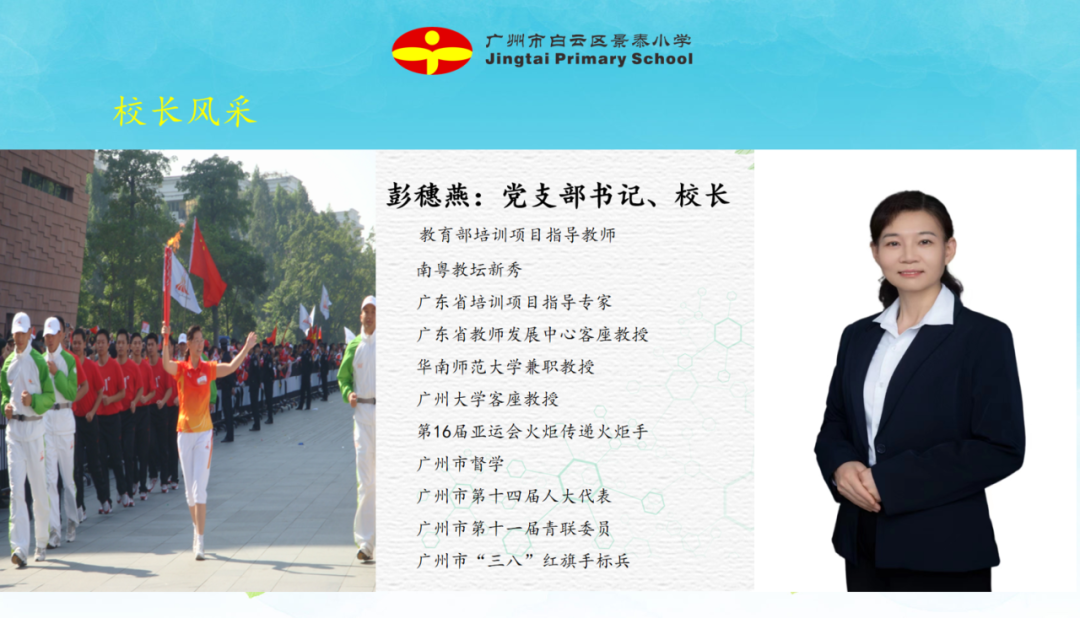 广州市白云区景泰小学创办于1997年,位于风景秀丽的白云山西麓,现有景泰和柯子岭两个校区,41个教学班,学生1776人。学校全面贯彻国家教育方针,落实立德树人根本任务,以“每天进步一点点”为校训,以“长长的路,我们用爱陪你走”为承诺,以丰富多样的主题活动“培根、铸魂”,为党育人;以智慧教育理念的课堂教学“启智、润心”,为国育才。