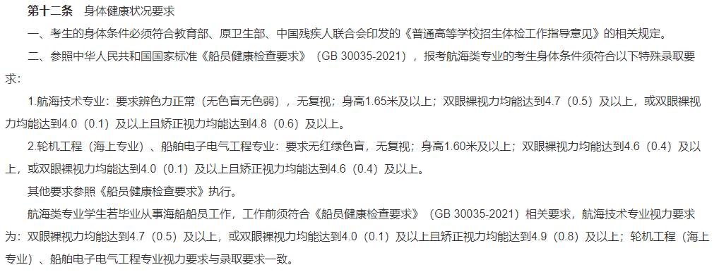 以大连海事大学为例,该校2023年招生章程第十二条规定: