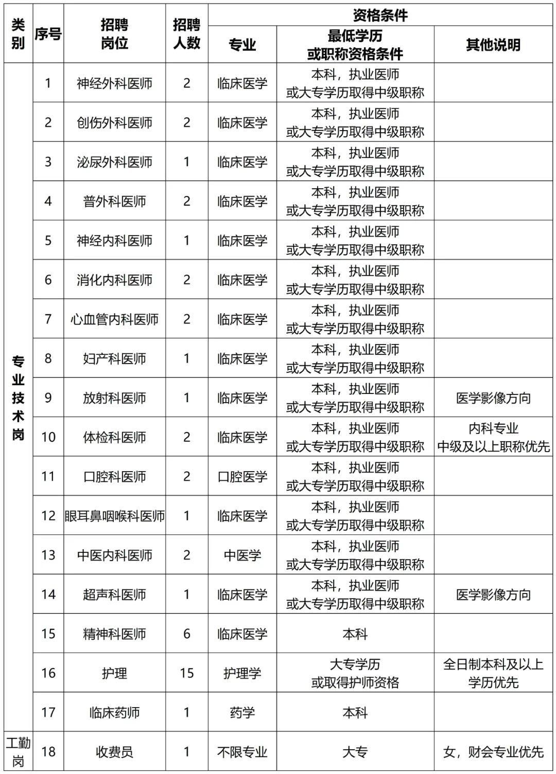 一、招聘岗位、人数及资格条件