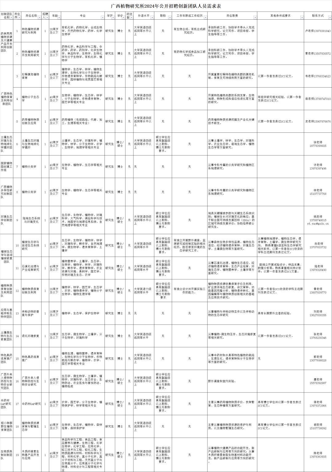 本次公开招聘创新团队人才岗位19个,招聘人数19名,具体信息详见附件。各招聘岗位要求的学历学位、职称等条件均为最低要求,达到要求以上的应聘者也可报名。