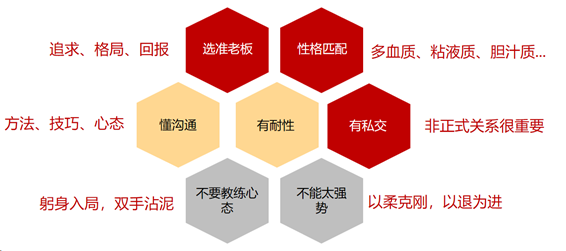 第二,性格匹配。人格特质包括多血质、粘液质、胆汁质等,但有些老板属于二踢脚式的性格,一点就炸,接受不了重话,这种性格是不匹配的,跟他干会很痛苦。