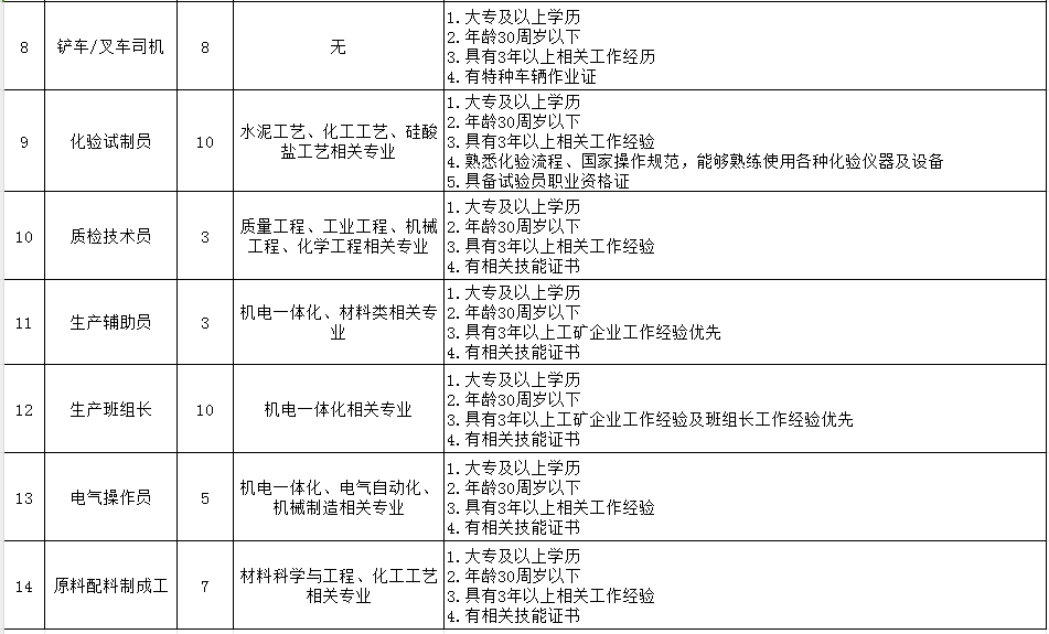 2. 大专及以上学历,年龄18-30周岁,具有三年及以上相关工作经验,持有相关技能等级资格证书。
