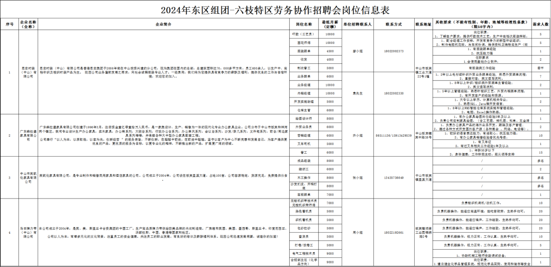 >2024年东区组团-六枝特区劳务协作招聘会岗位信息