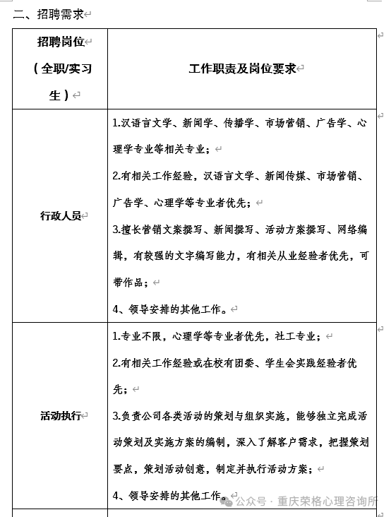 1.具备良好的沟通能力、表达能力、协调能力、抗压能力、团队协作能力(1)全职员工:实习三个月,实习期间薪资为2500-3000元/月不等,实习表现好可转正,转正后薪资4000元-6000+元/月不等;4.进入一个健康、积极、开放、人性化的职业发展空间;5.可以充分发挥运用你的所长,你可以在工作中成长进步。重庆市两江新区两江新区管委会(金山大厦),两江管委会龙兴大厦(总部大厦)。六、报名方式
