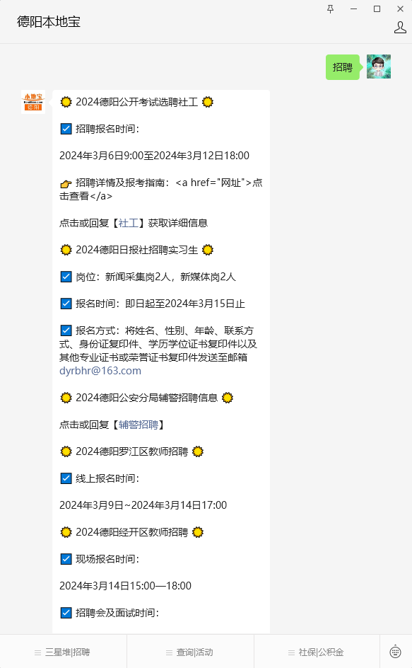 报名登记表获取:“德阳本地宝”公众号对话框回复“教师招聘”即可获取
